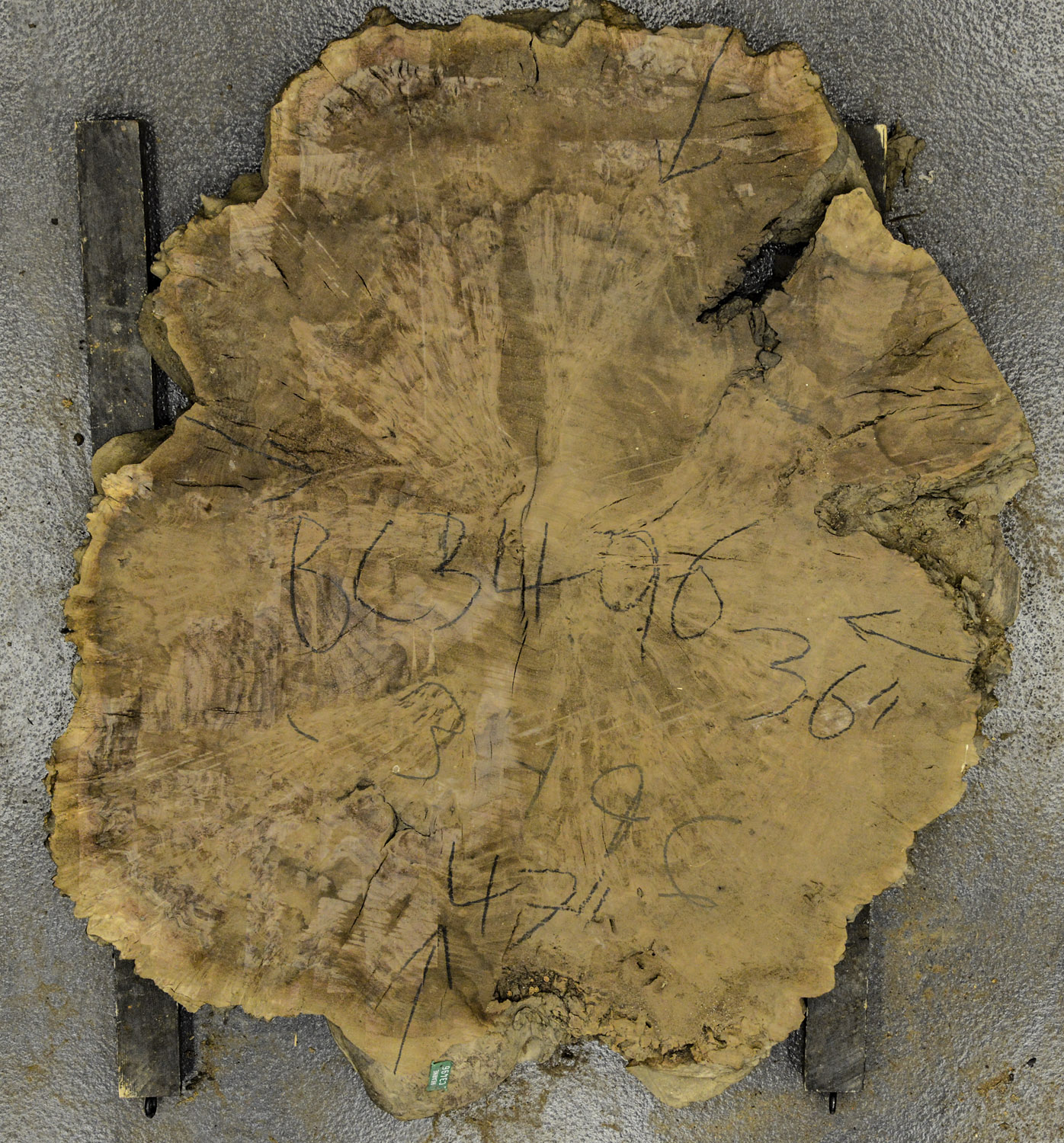 English Elm slab from Berkshire Products measuring 3-1/2" thick x 49"-52"-59" wide x 10' 5" long