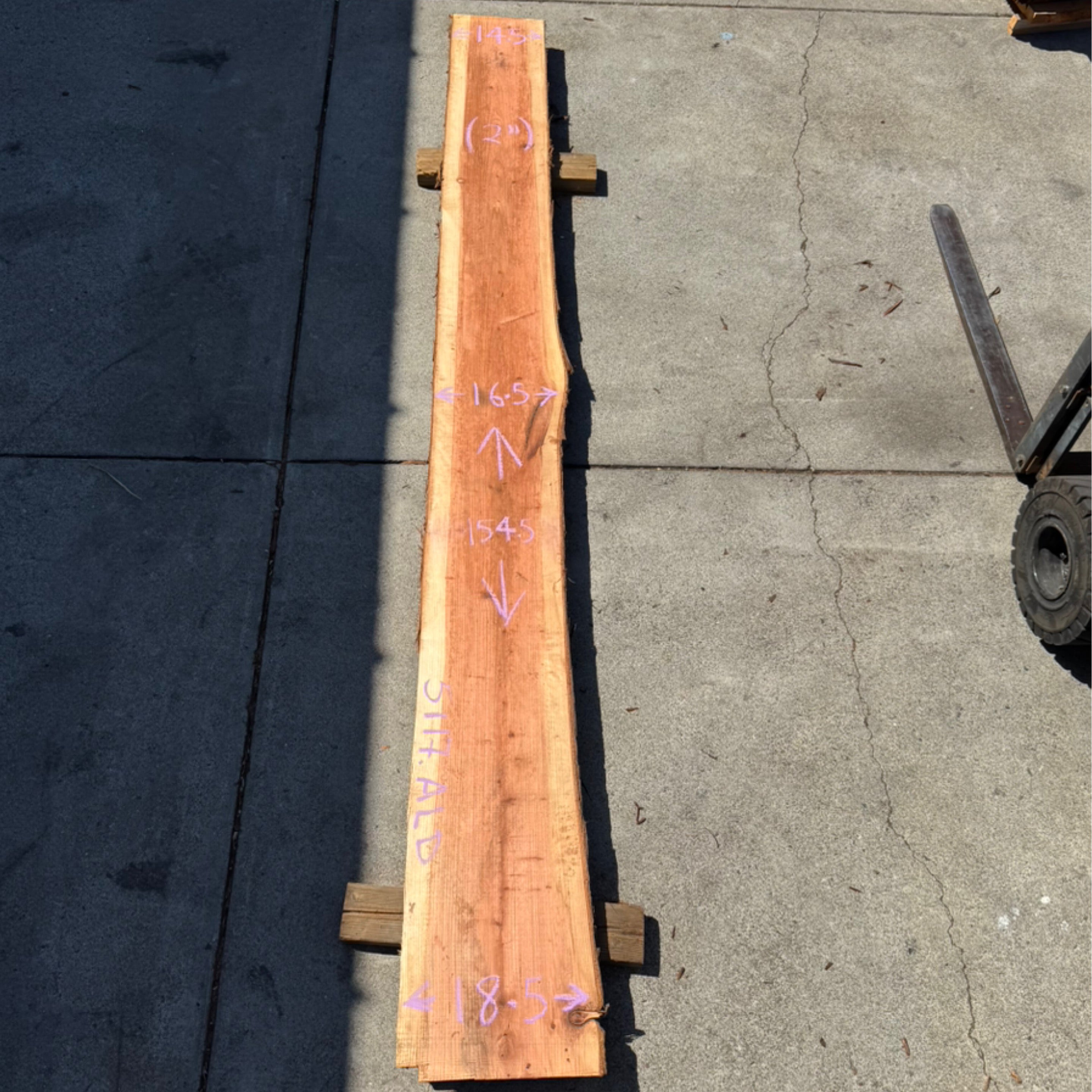 Redwood slab from Peroba Reclaimed measuring 2" thick x 14.5"-16.5"-18.5" wide x 154.5" long