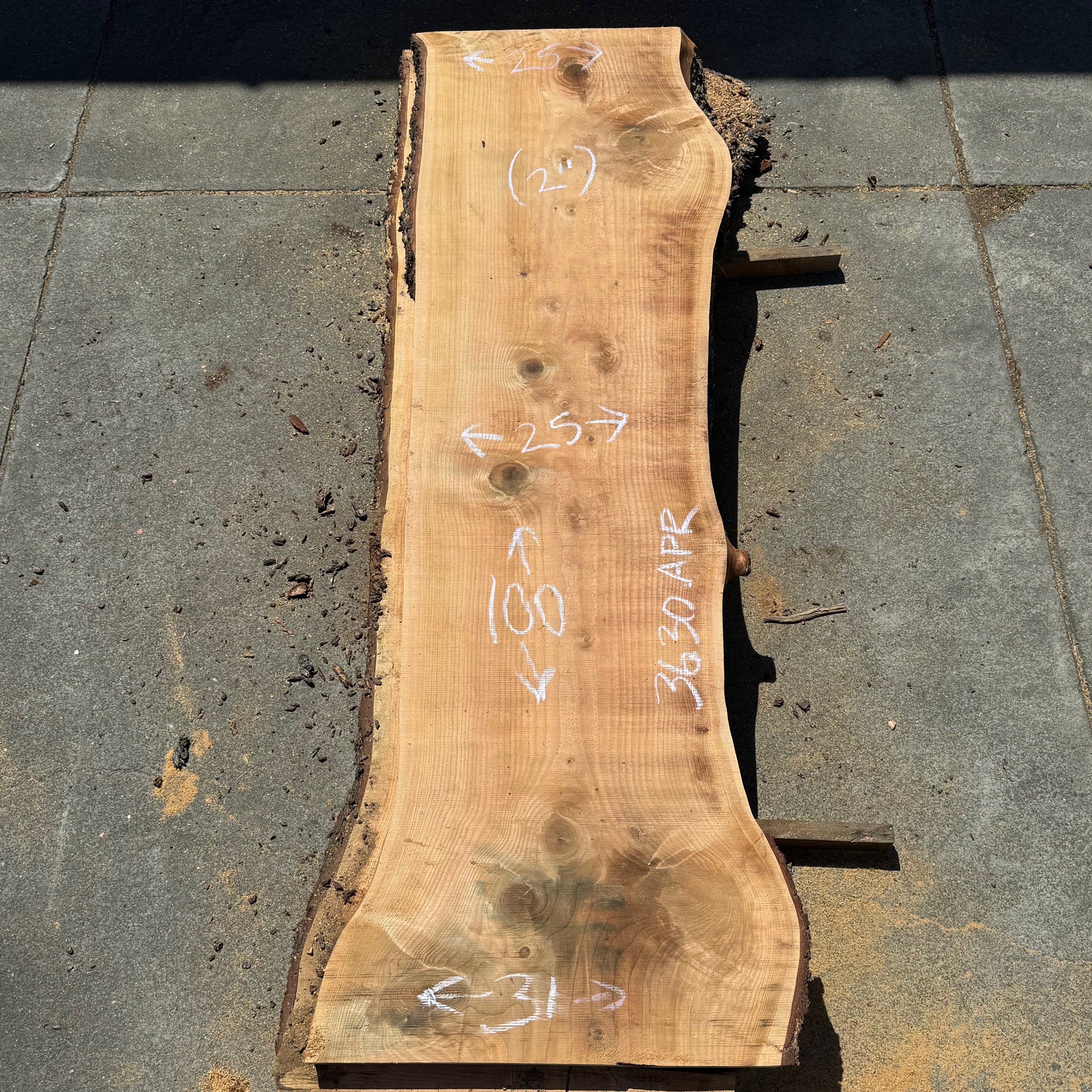 Cedar slab from Peroba Reclaimed measuring 2" thick x 25"-25"-31" wide x 100" long