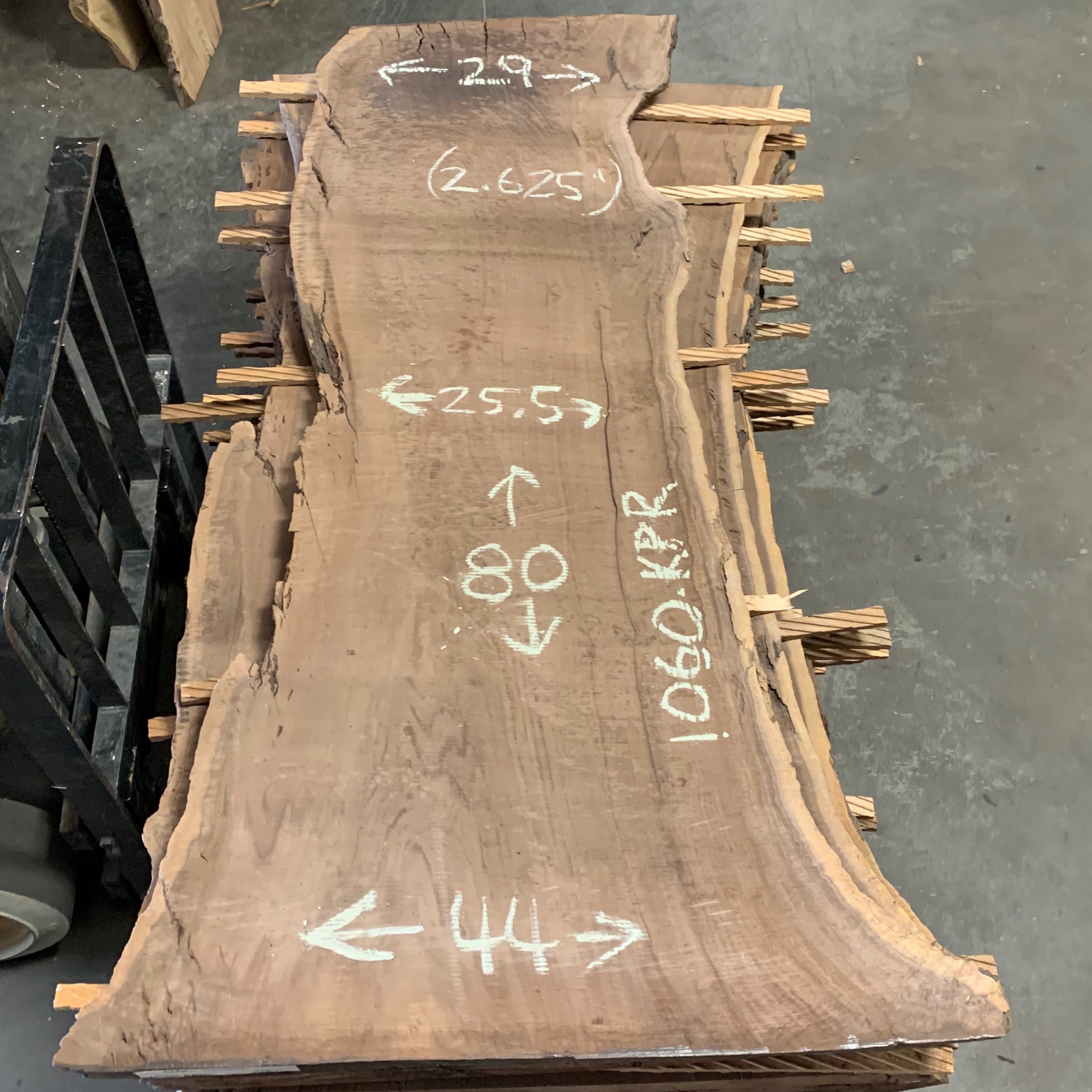 Claro Walnut slab from Peroba Reclaimed measuring 2.625" thick x 29"-25.5"-44" wide x 80" long