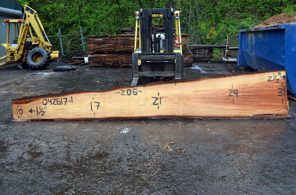 Redwood slab from Goby Walnut measuring 1.5"-2.5" thick x 10"-17"-21"-29"-31" wide x 206" long