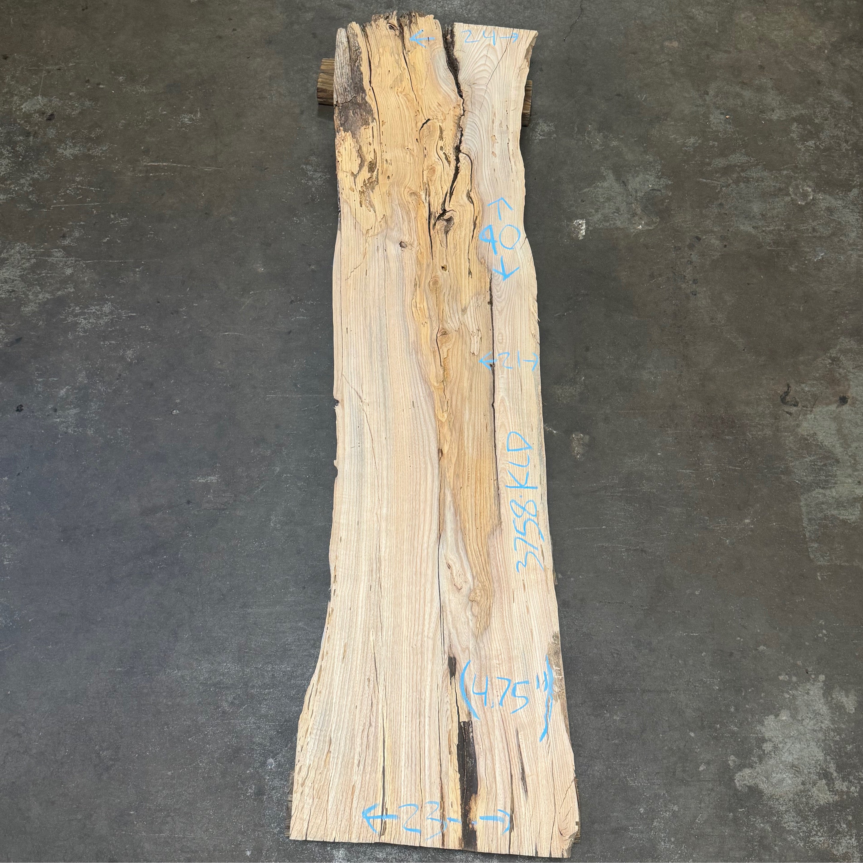 Ash slab from Peroba Reclaimed measuring 4.75" thick x 24"-21"-23" wide x 90" long