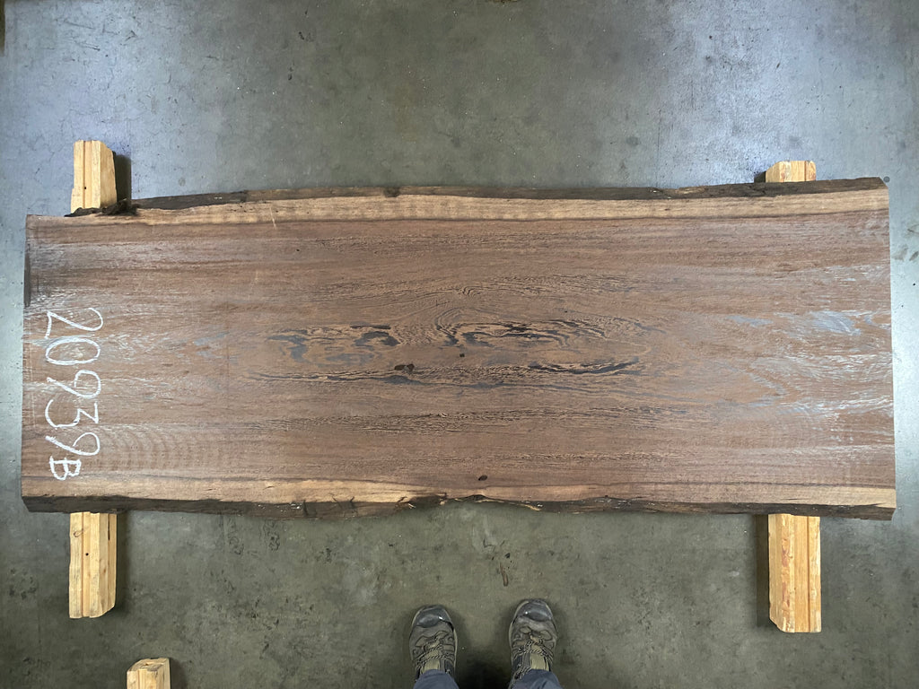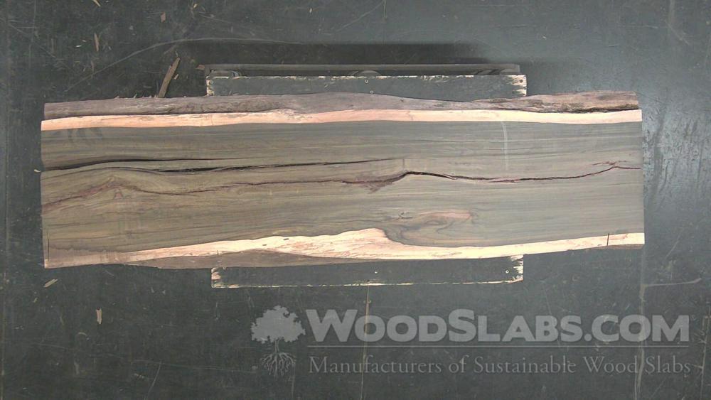 Black Acacia slab from Peroba Reclaimed measuring 3.25" thick x 25.5"-25"-26.75" wide x 85" long
