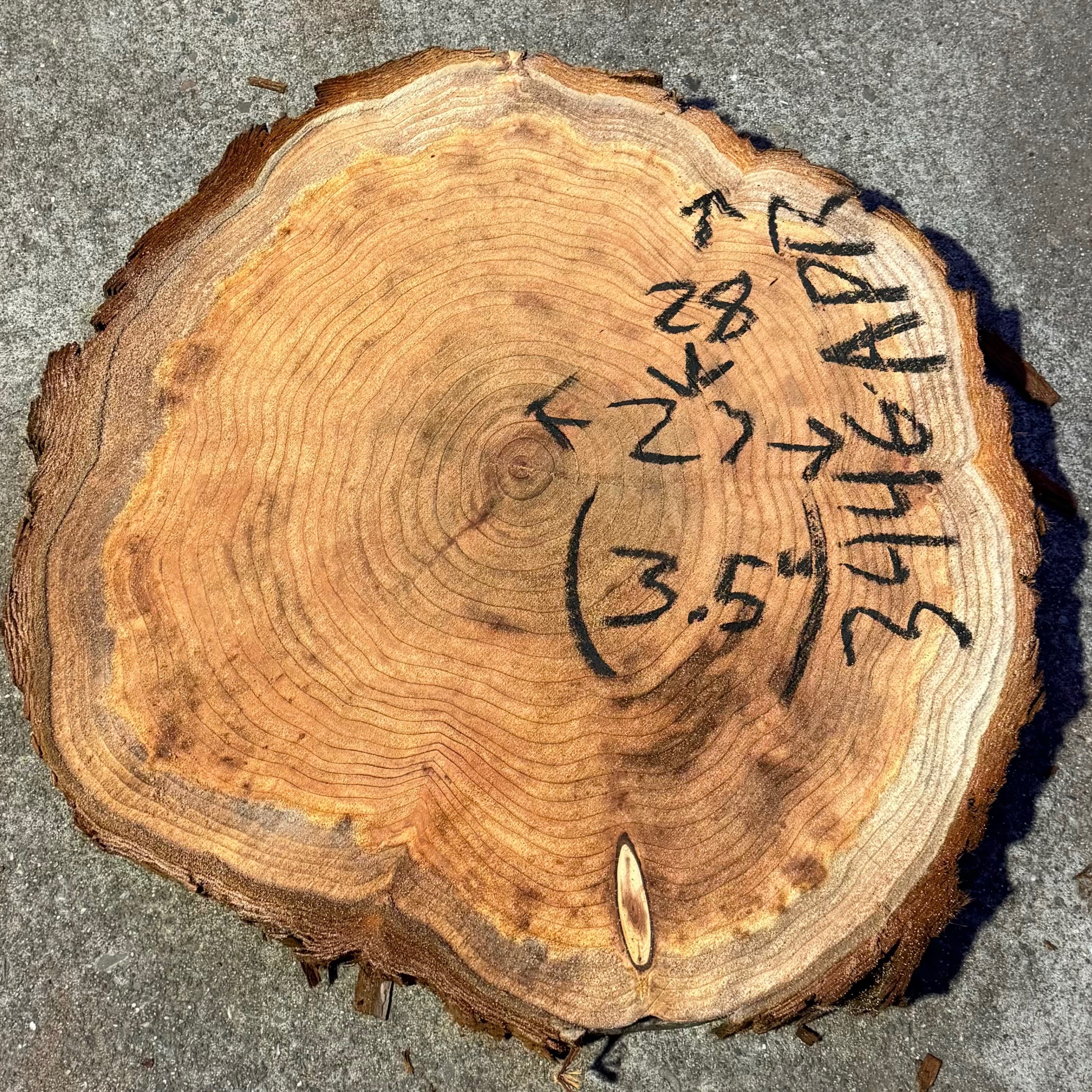 Redwood slab from Peroba Reclaimed measuring 3.5" thick x 27" wide x 28" long