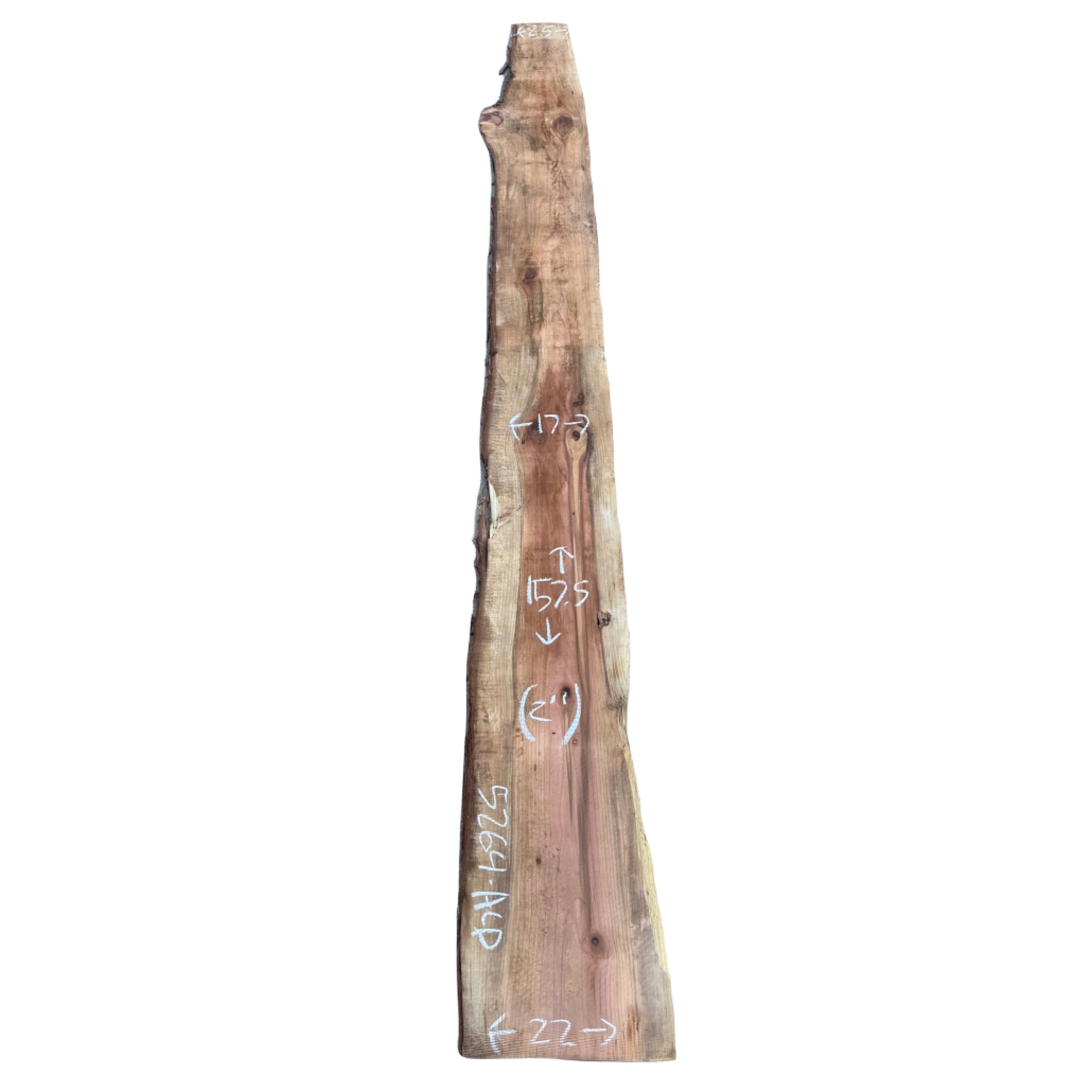 Redwood slab from Peroba Reclaimed measuring 2" thick x 8.5"-17"-22" wide x 157.5" long