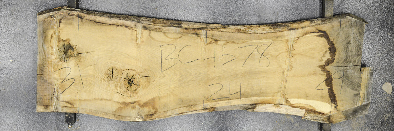 Maple (Big Leaf) slab from Goby Walnut measuring 3.25" thick x 63"-56"-50"-47"-50" wide x 189" long