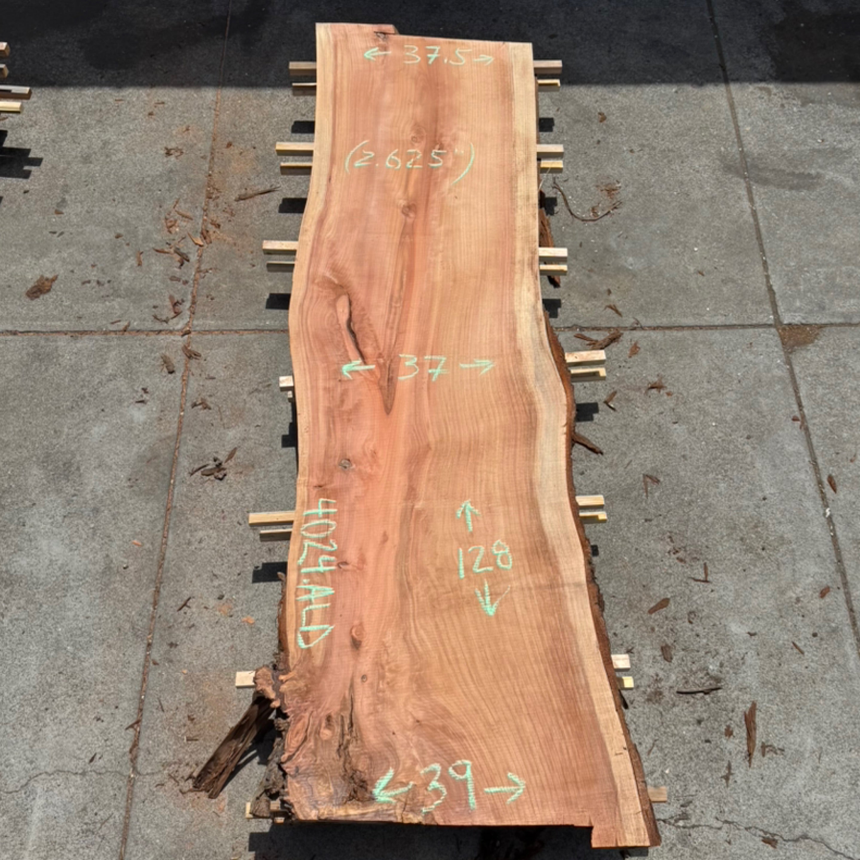 Redwood slab from Peroba Reclaimed measuring 2.625" thick x 37.5"-37"-39" wide x 128" long
