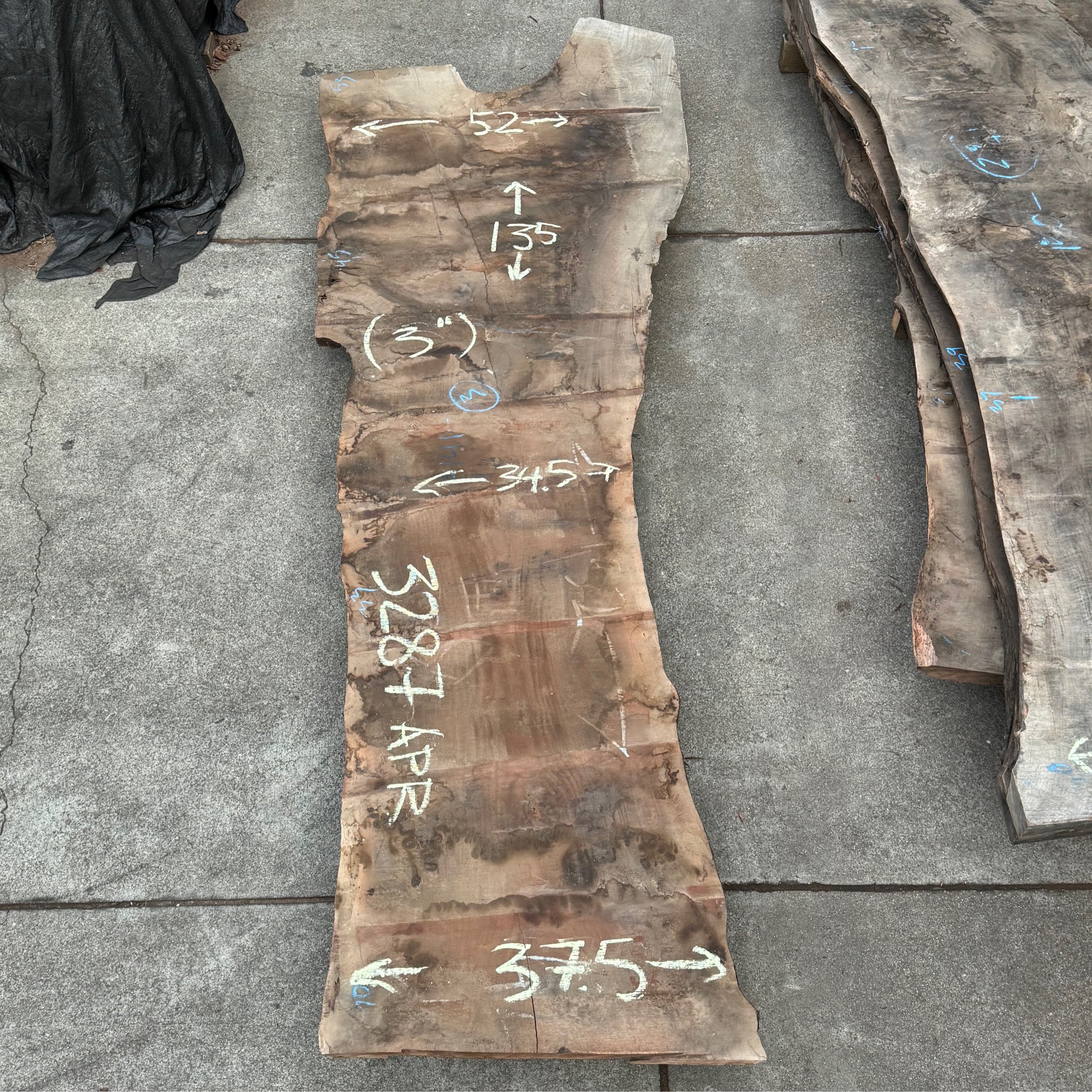 Claro Walnut slab from Peroba Reclaimed measuring 3" thick x 52"-34.5"-37.5" wide x 135" long