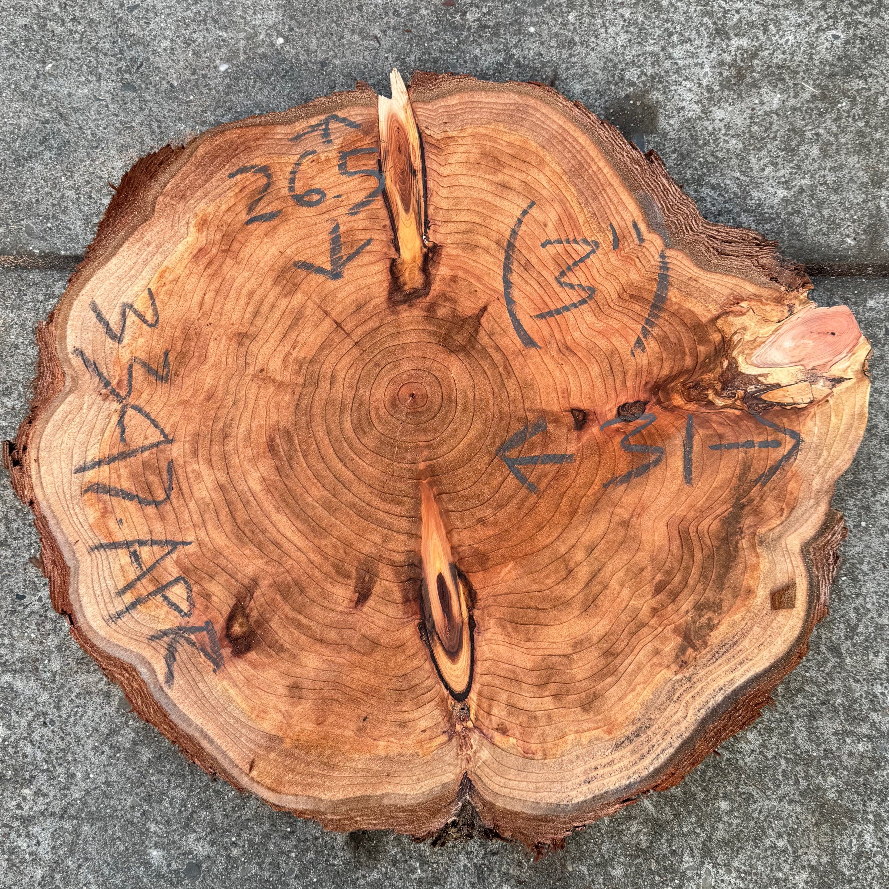 Redwood slab from Peroba Reclaimed measuring 3" thick x 26.5" wide x 31" long