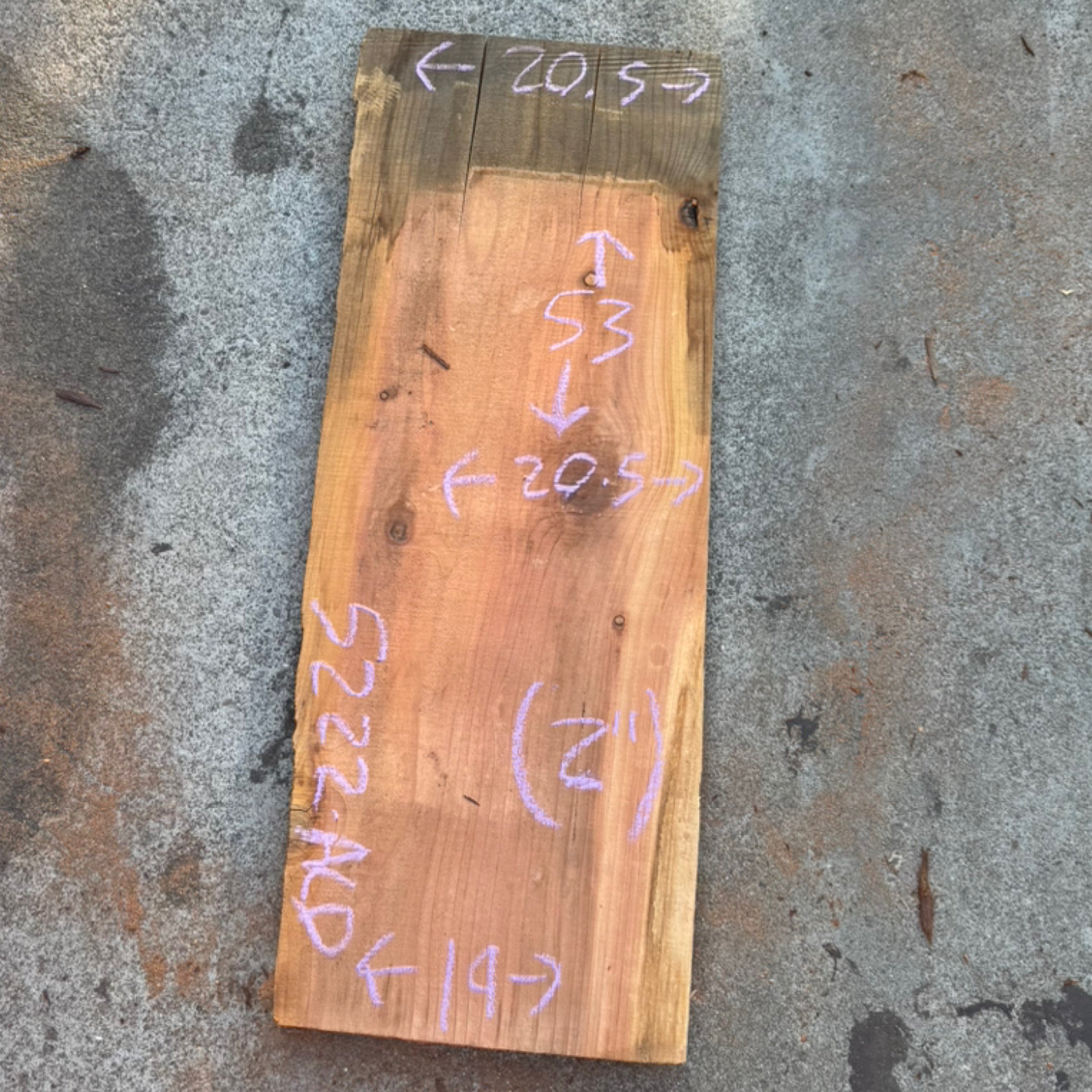 Redwood slab from Peroba Reclaimed measuring 2" thick x 20.5"-10.5"-19" wide x 53" long