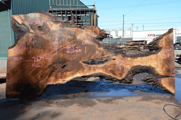 Redwood slab from GL Veneer measuring 3.75" thick x 61"-72" wide x 253"-276" long