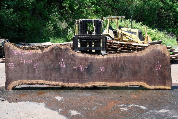 Black Walnut slab from Goby Walnut measuring 3" thick x 55"-39"-46"-35"-52" wide x 196" long
