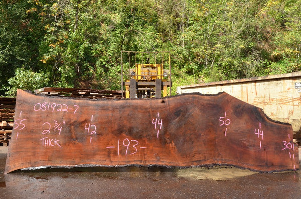 Black Walnut slab from Goby Walnut measuring 2.75" thick x 55"-42"-44"-50"-44"-30" wide x 193" long