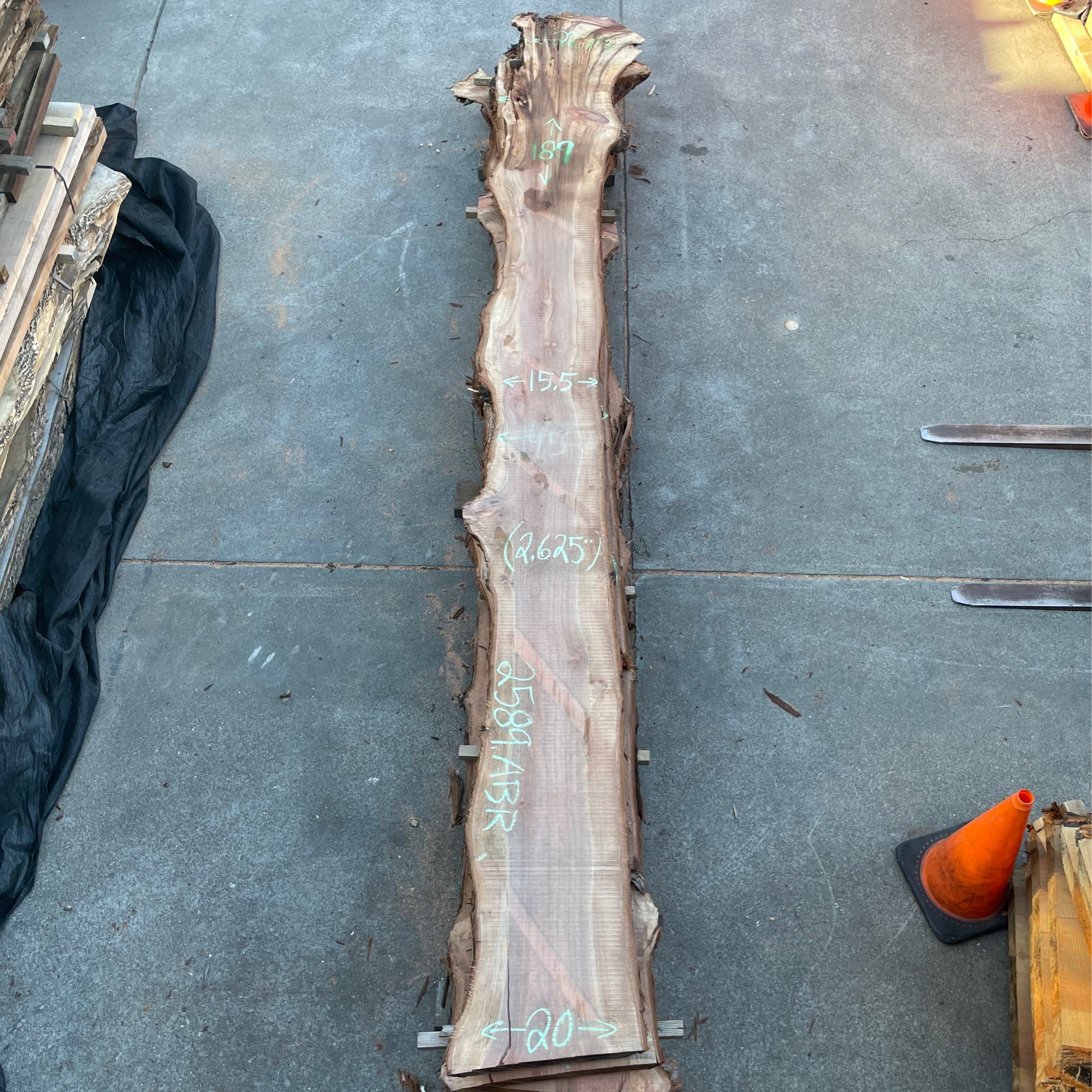 Redwood slab from Peroba Reclaimed measuring 2.625" thick x 22"-15.5"-20" wide x 189" long
