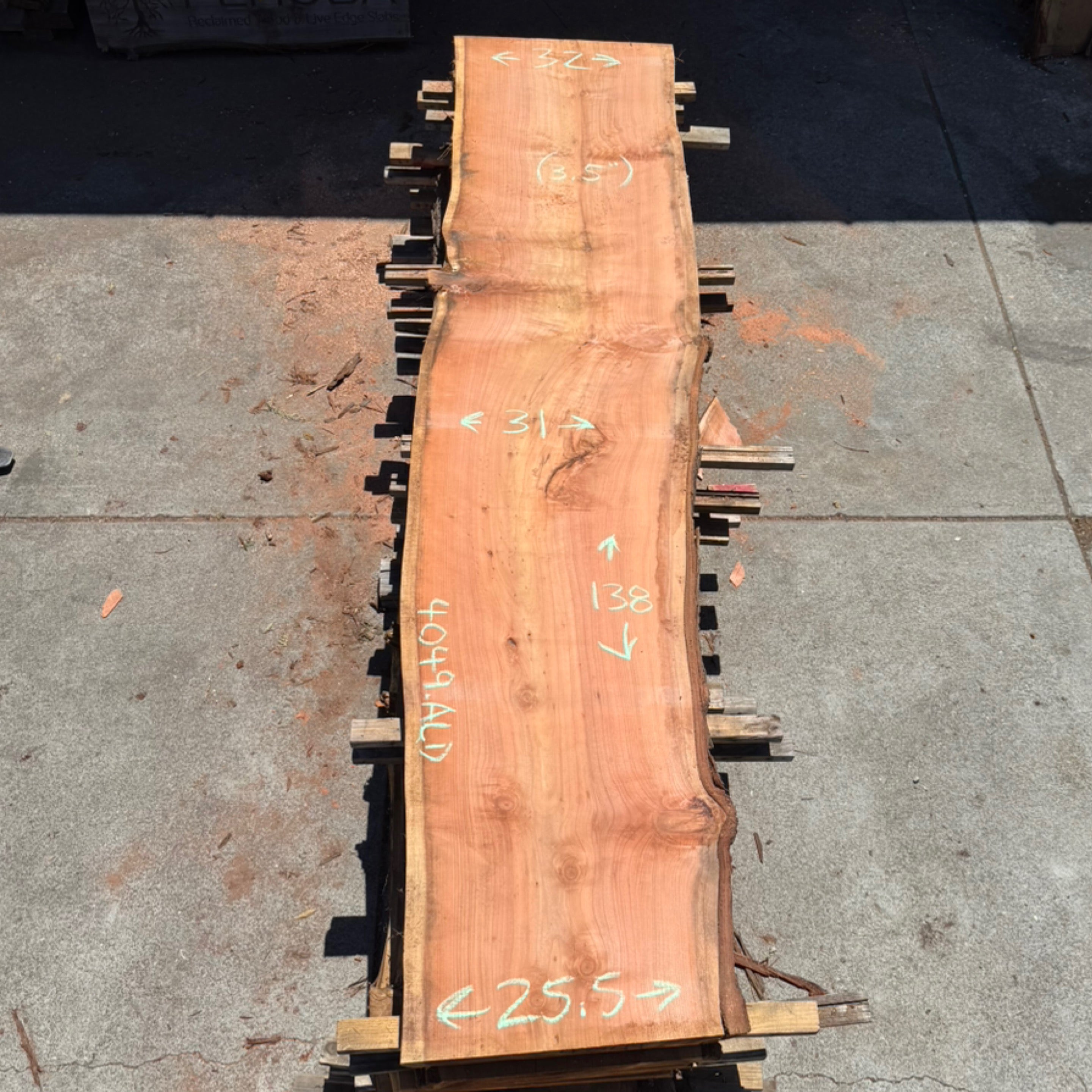 Redwood slab from Peroba Reclaimed measuring 3.5" thick x 32"-31"-25.5" wide x 138" long