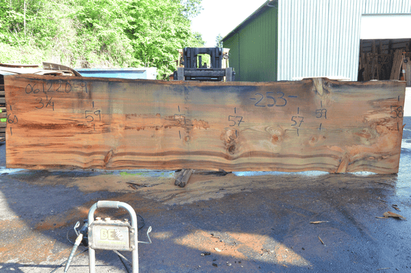 Fir slab from Goby Walnut measuring 3.25" thick x 60"-59"-55"-57"-59"-58" wide x 253" long