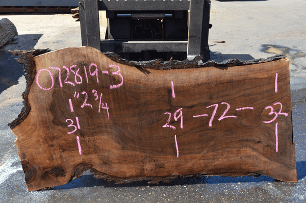 Black Walnut slab from Goby Walnut measuring 2.75" thick x 31"-29"-32" wide x 72" long