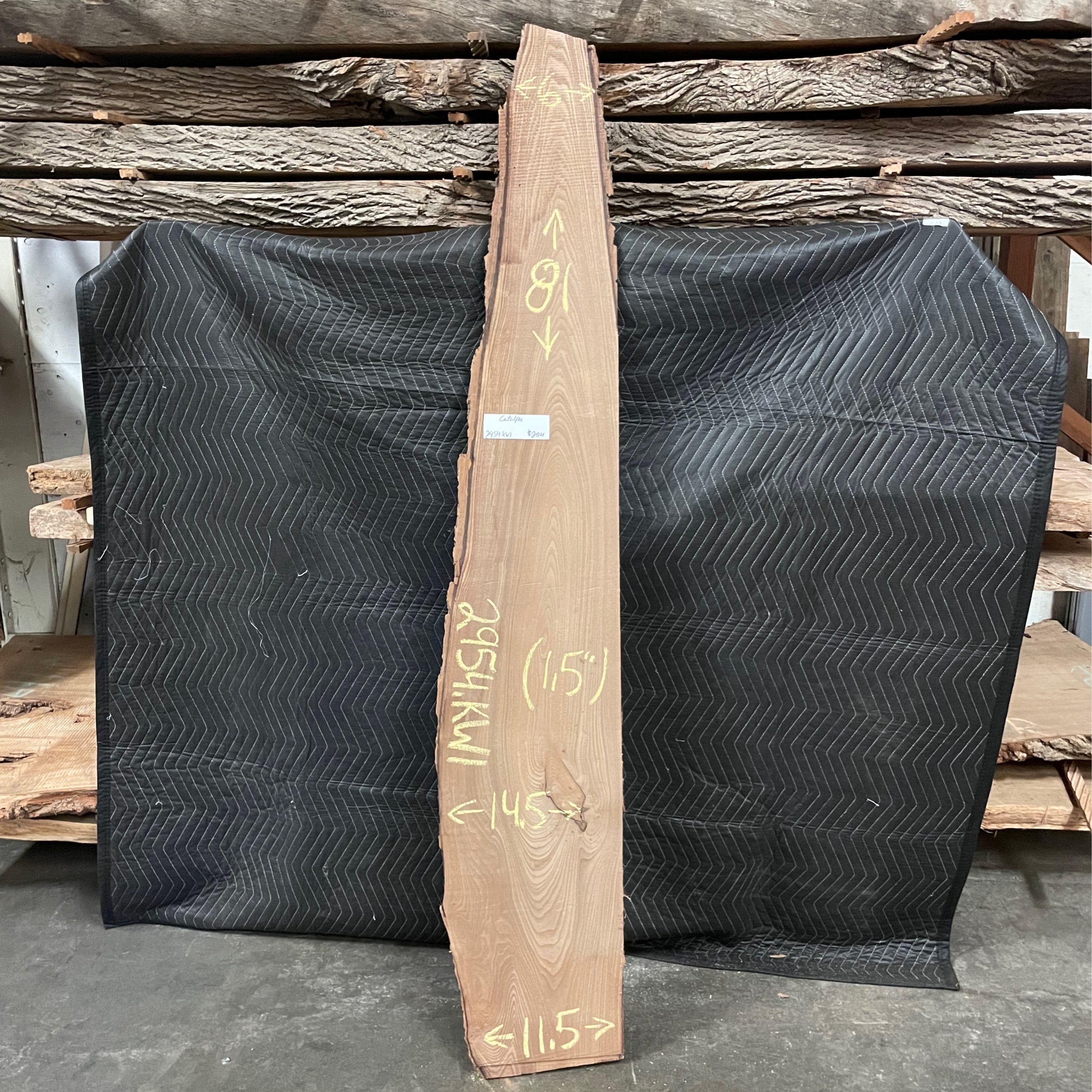 Catalpa slab from Peroba Reclaimed measuring 1.5" thick x 6"-14.5"-11.5" wide x 81" long