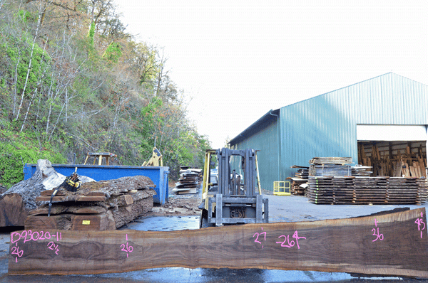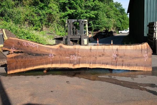 Black Walnut slab from Goby Walnut measuring 3.25" thick x 55"-33"-36"-43" wide x 226" long