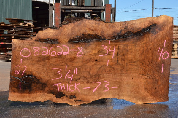 Black Walnut slab from Goby Walnut measuring 3.25" thick x 27"-34"-40" wide x 73" long