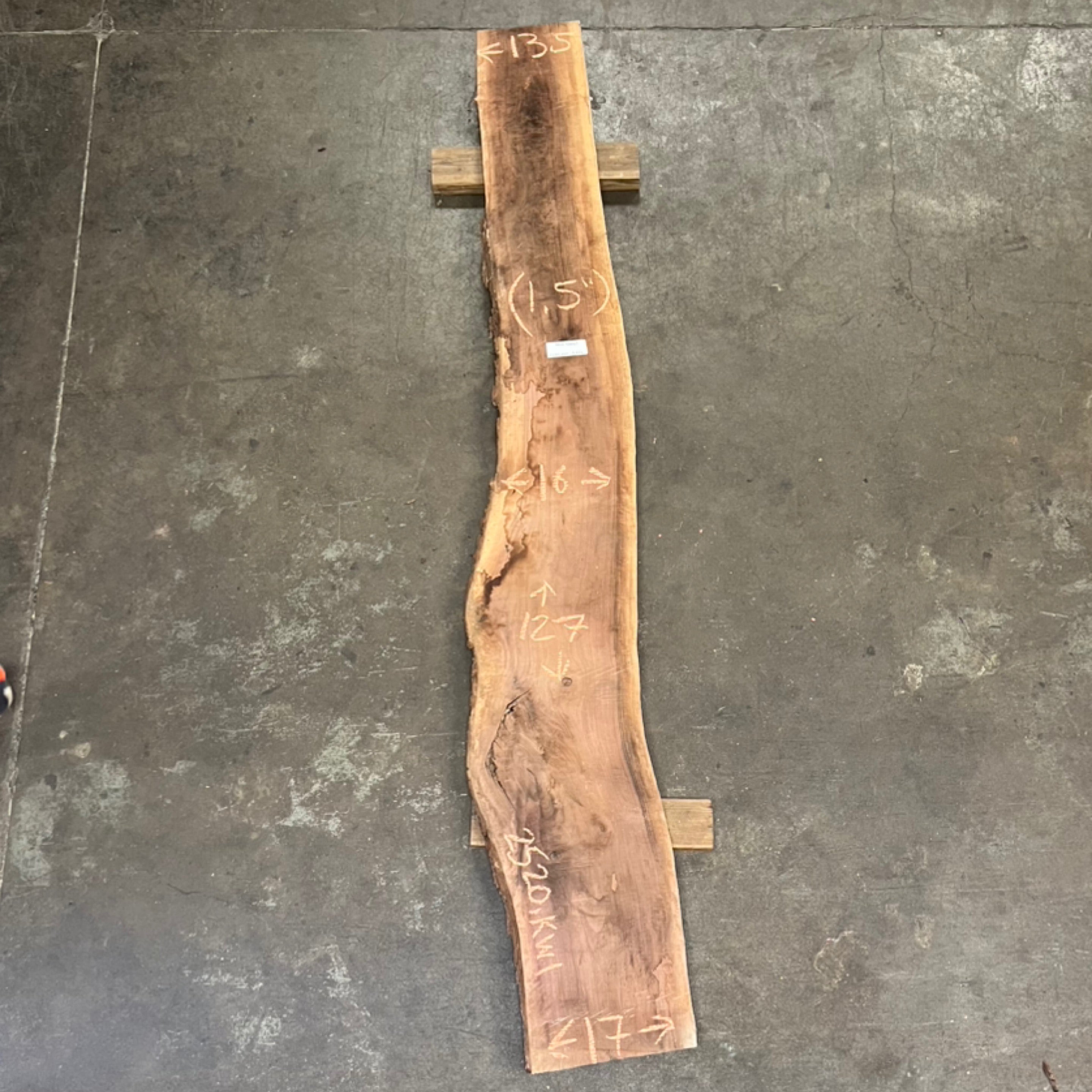 Black Walnut slab from Peroba Reclaimed measuring 1.5" thick x 13.5"-16"-17" wide x 127" long