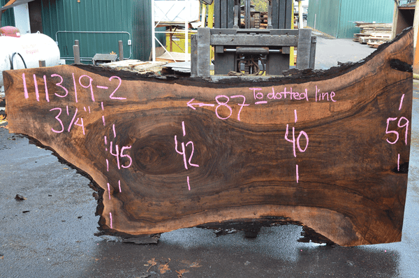 Black Walnut slab from Goby Walnut measuring 3.25" thick x 45"-42"-40"-59" wide x 87" long