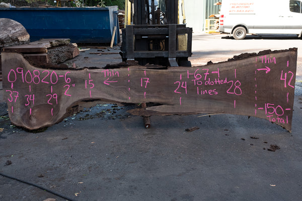 Black Walnut slab from Goby Walnut measuring 3" thick x 62"-55"-54"-53"-56"-60" wide x 250" long