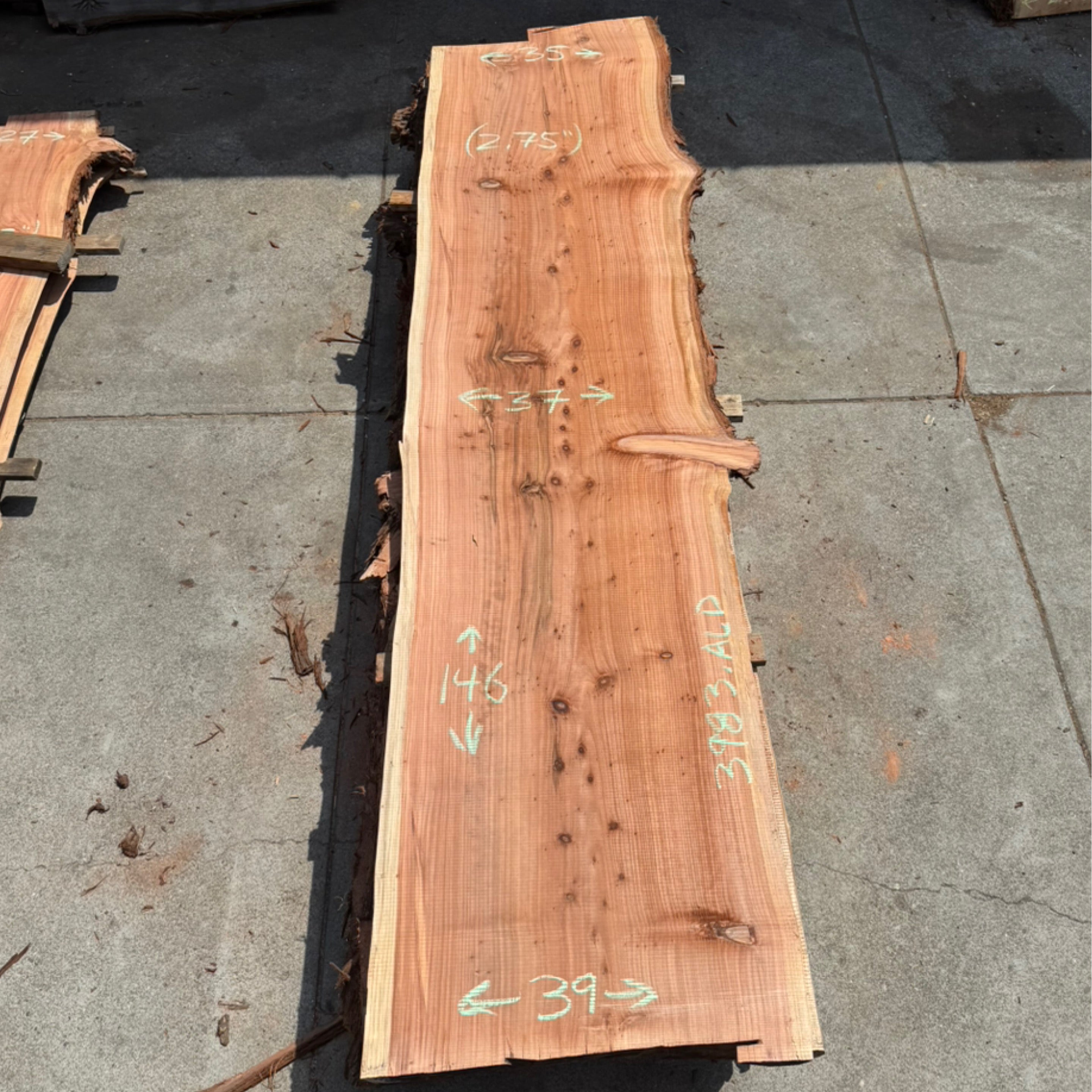 Redwood slab from Peroba Reclaimed measuring 2.75" thick x 35"-37"-39" wide x 146" long