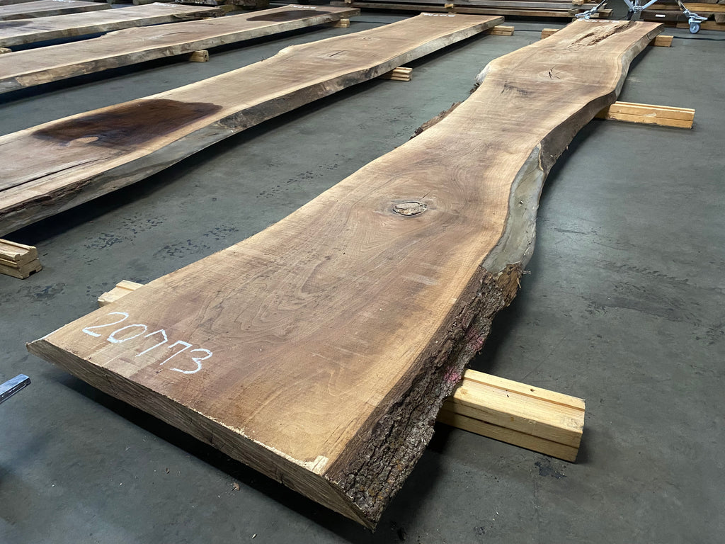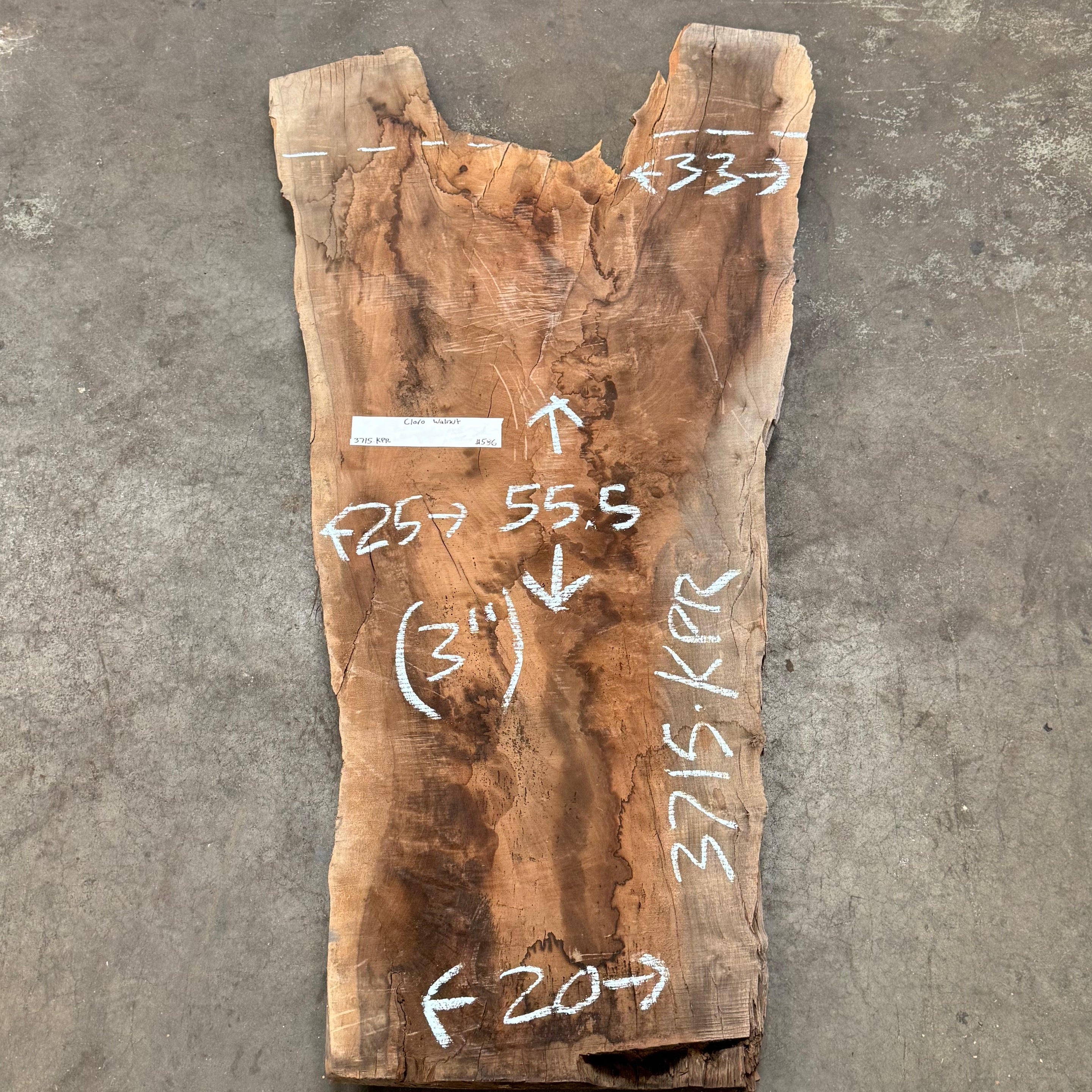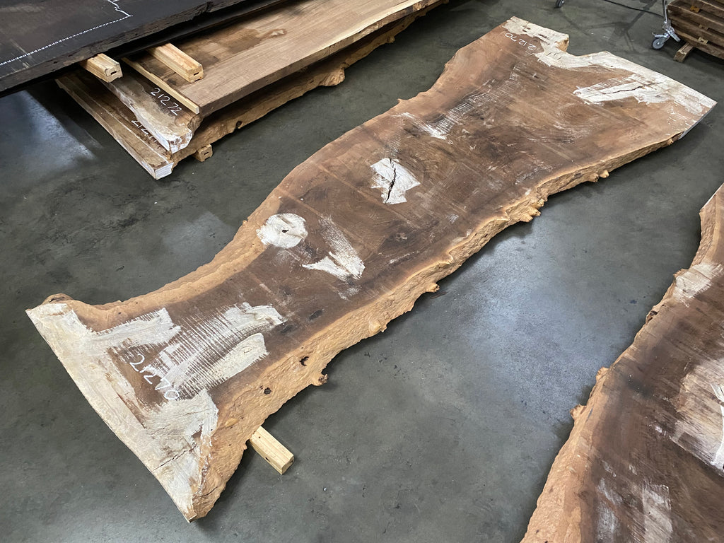 Claro Walnut slab from CS Woods measuring 3" thick x 31"-61" wide x 152" long