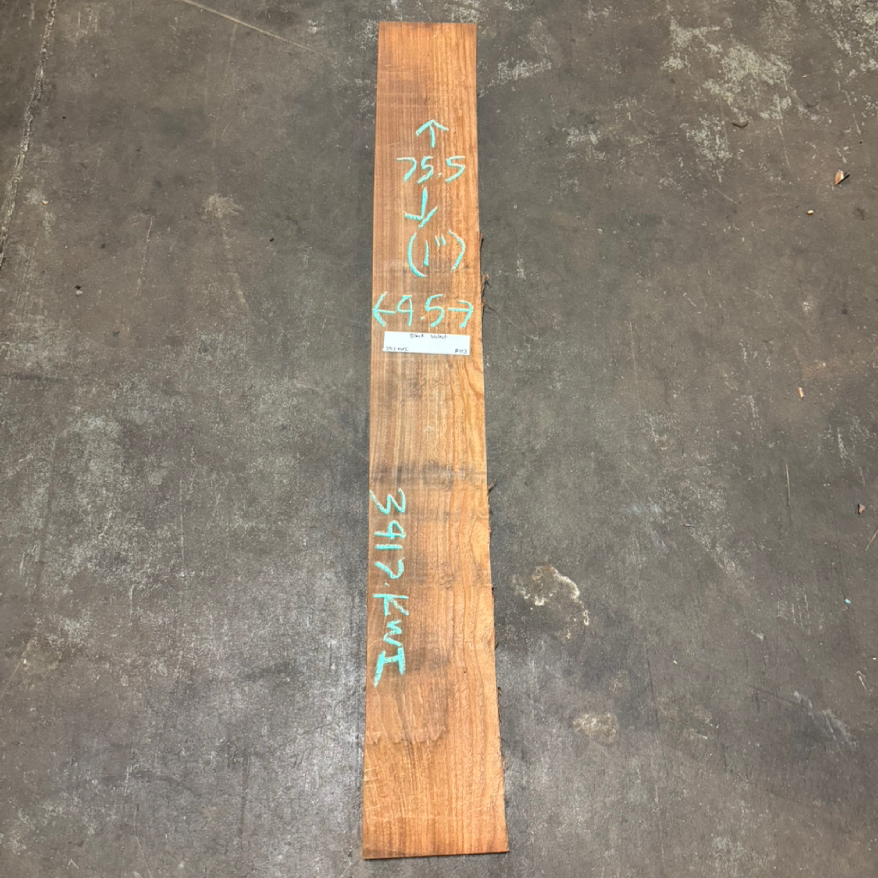Black Walnut slab from Peroba Reclaimed measuring 1" thick x 9.5" wide x 75.5" long