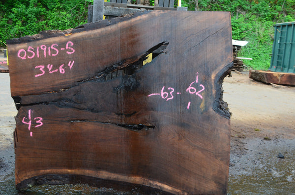 Black Walnut slab from Goby Walnut measuring 3"-6" thick x 43"-62" wide x 63" long