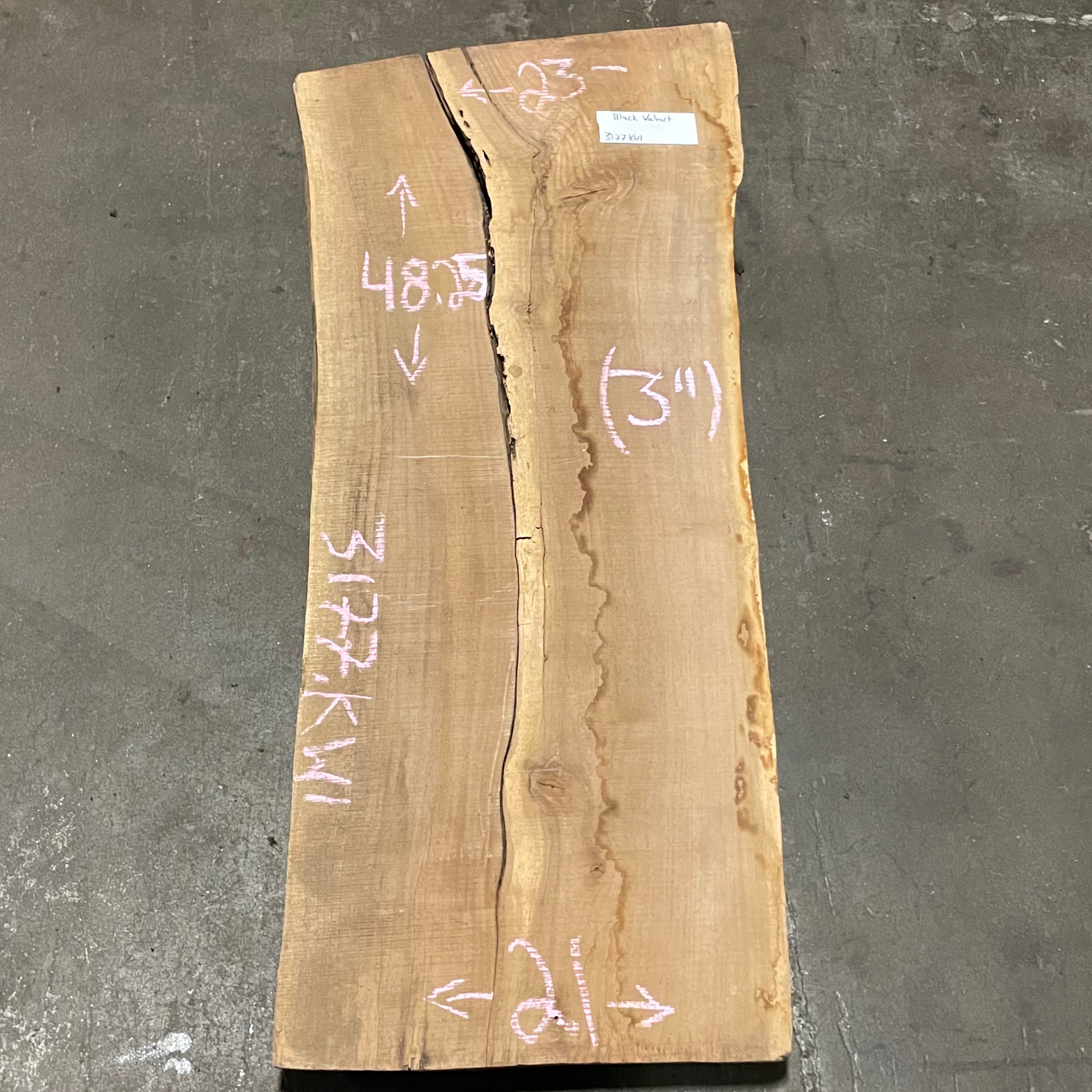 Black Walnut slab from Peroba Reclaimed measuring 3" thick x 23"-21" wide x 48.25" long