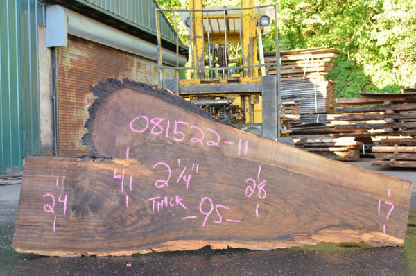 Black Walnut slab from Goby Walnut measuring 2.25" thick x 24"-41"-28"-17" wide x 95" long