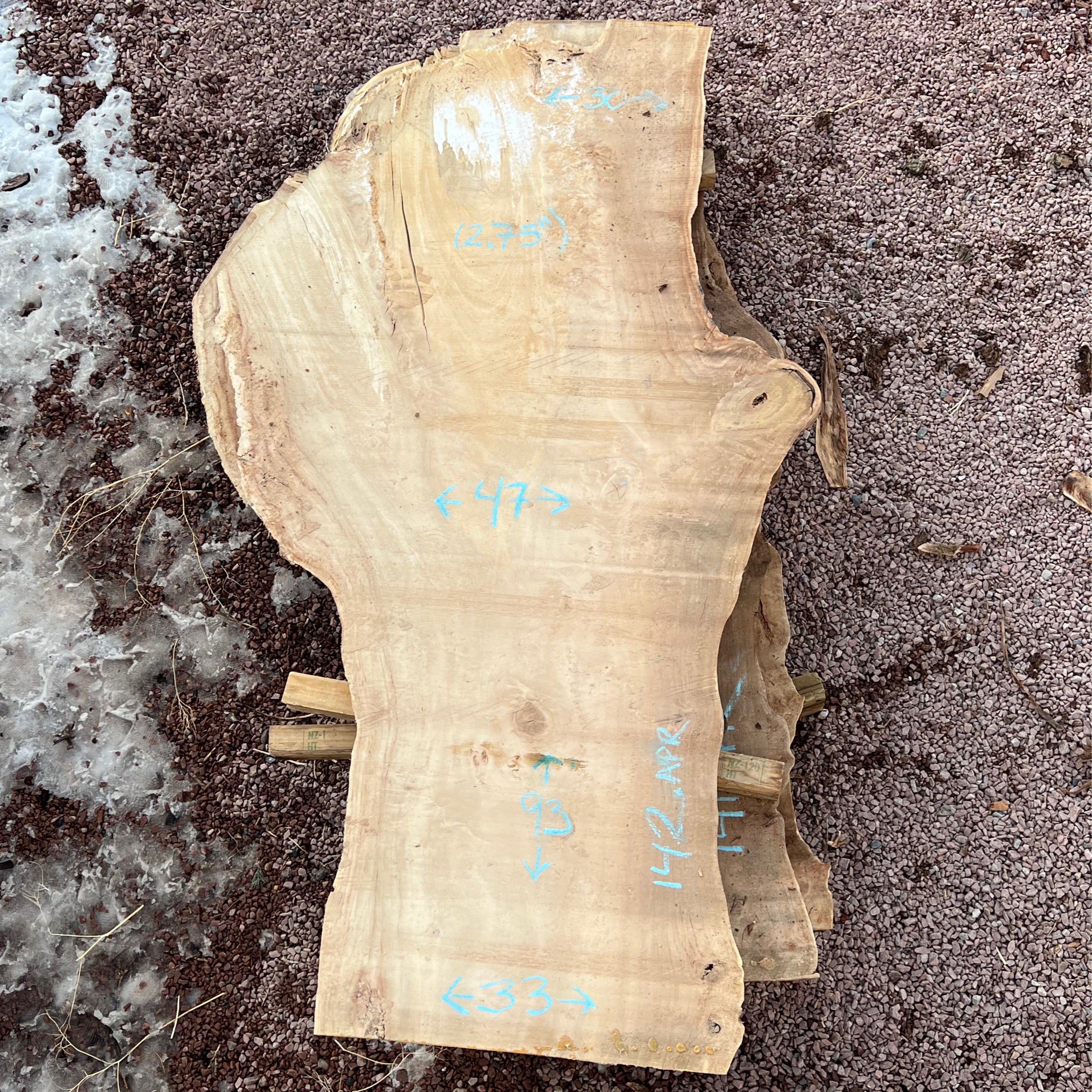 Cottonwood slab from Peroba Reclaimed measuring 2.75" thick x 30"-47"-33" wide x 93" long