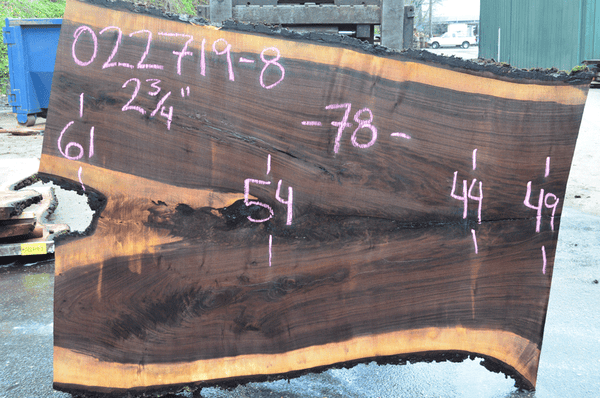Black Walnut slab from Goby Walnut measuring 2.75" thick x 61"-54"-44"-49" wide x 78" long