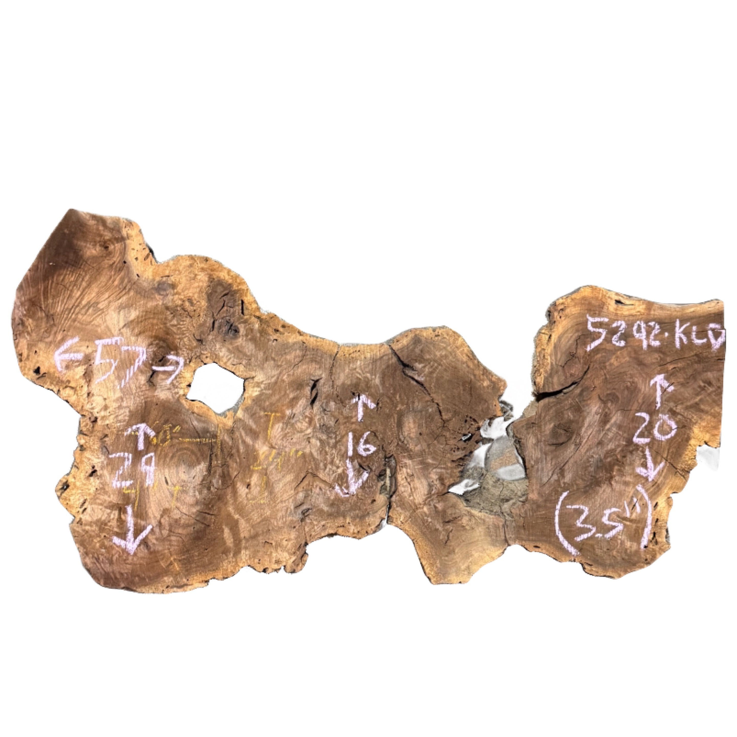 Claro Walnut slab from Peroba Reclaimed measuring 3.5" thick x 29"-16"-20" wide x 57" long