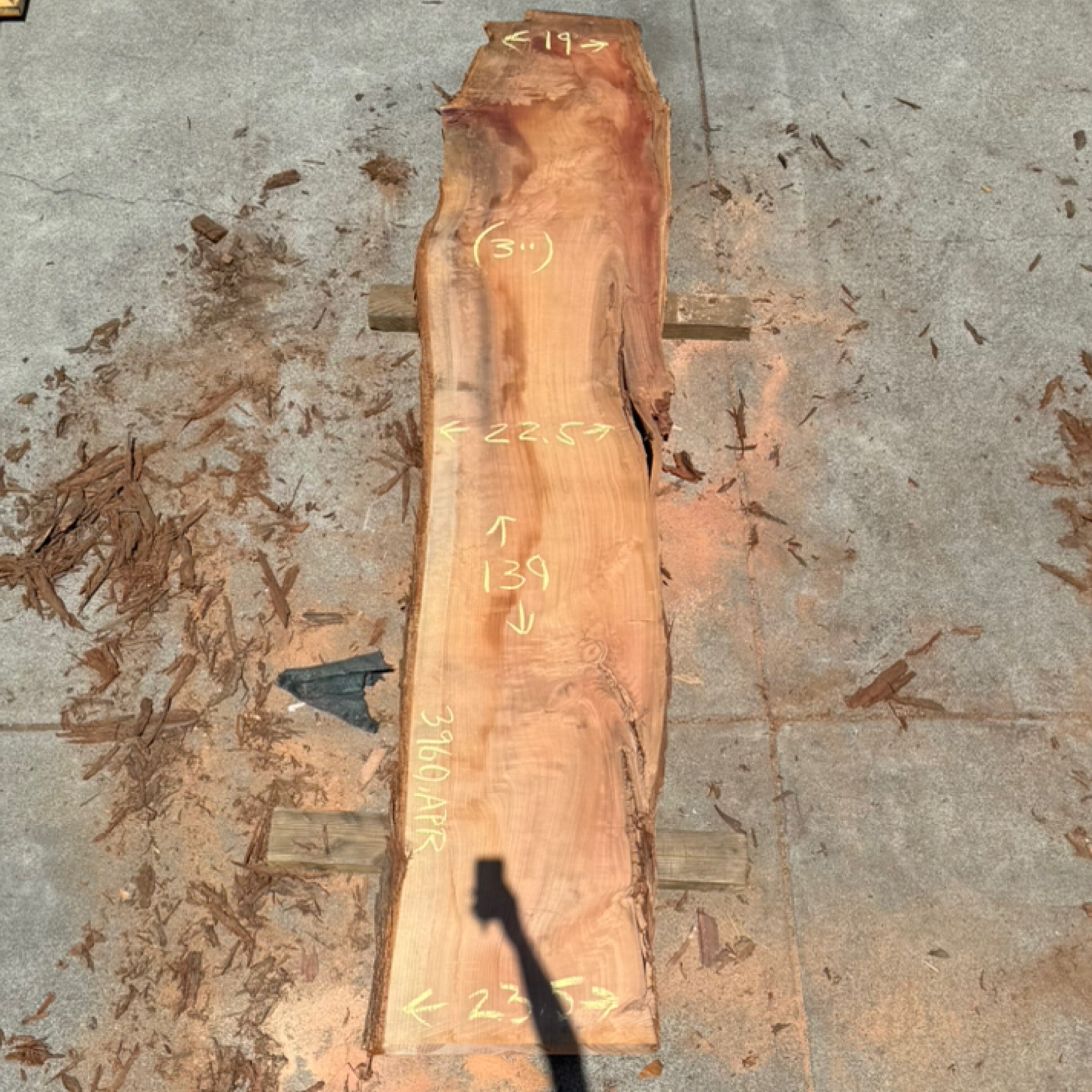 Cedar slab from GL Veneer measuring 3.5" thick x 25"-36" wide x 145"-180" long