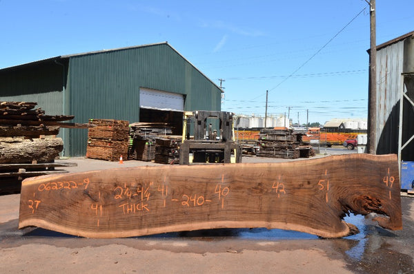 Black Walnut slab from Goby Walnut measuring 2.25"-4.25" thick x 27"-41"-41"-40"-42"-51"-49" wide x 240" long