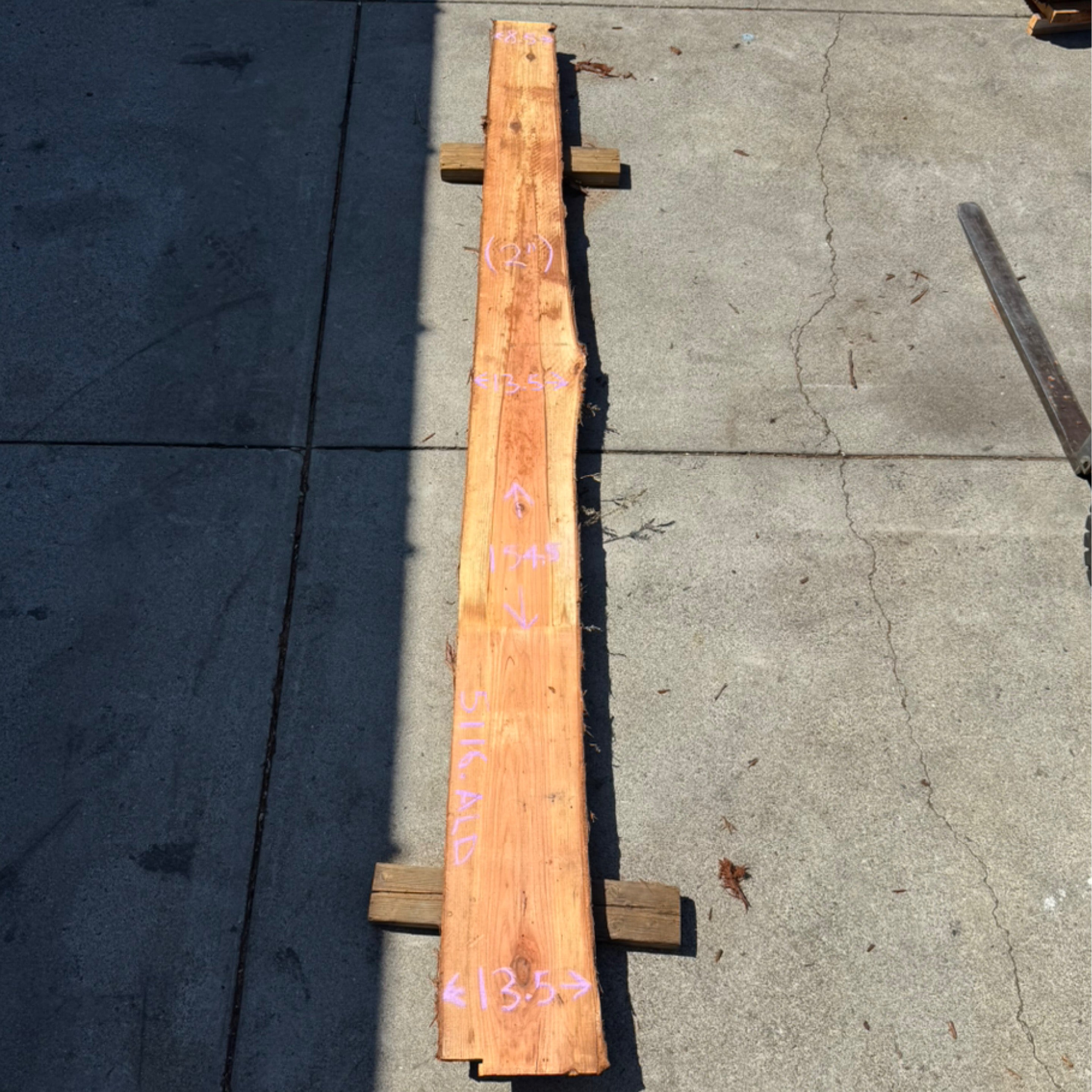 Redwood slab from Peroba Reclaimed measuring 2" thick x 8.5"-13.5"-13.5" wide x 154.5" long