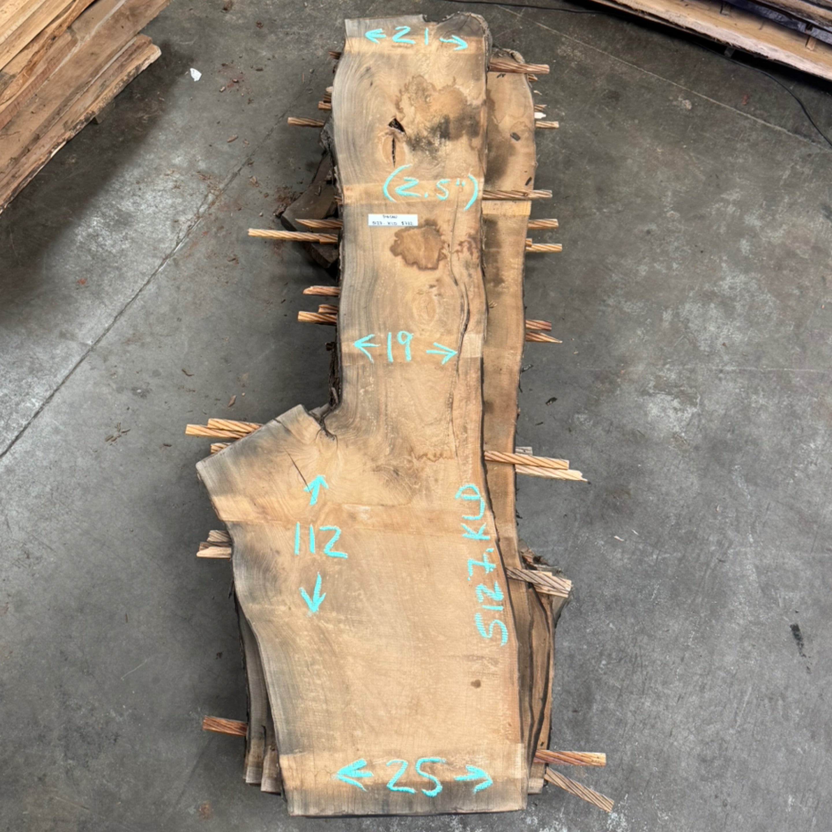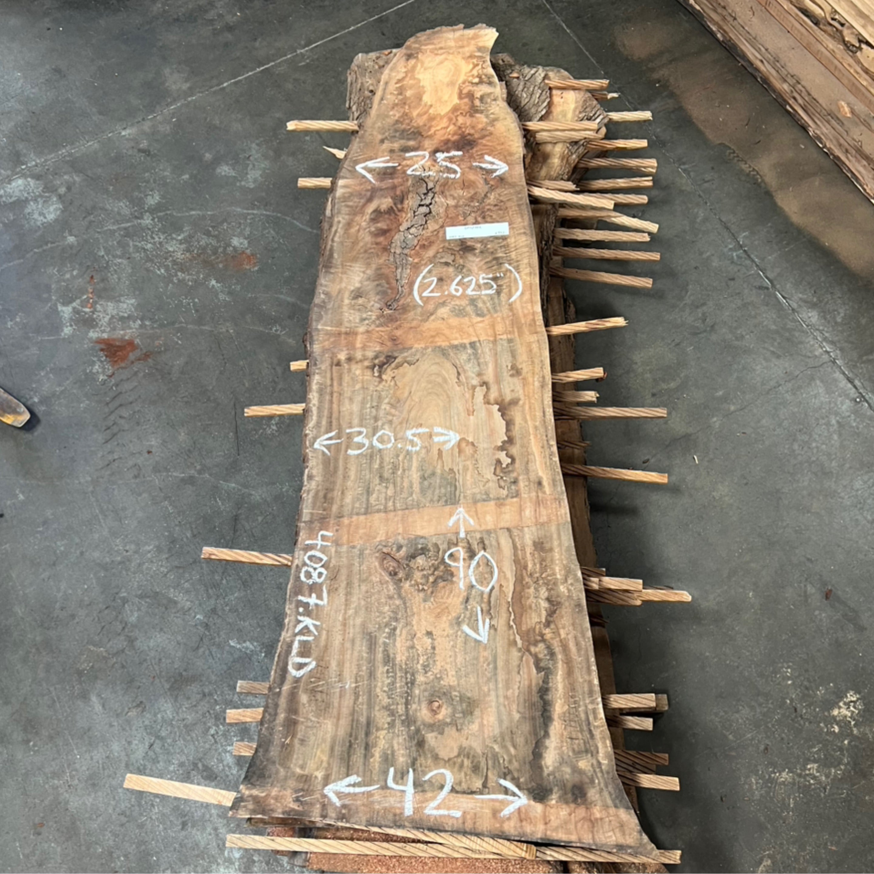 Sycamore slab from Goby Walnut measuring 2.25" thick x 47"-33"-30"-39" wide x 97" long