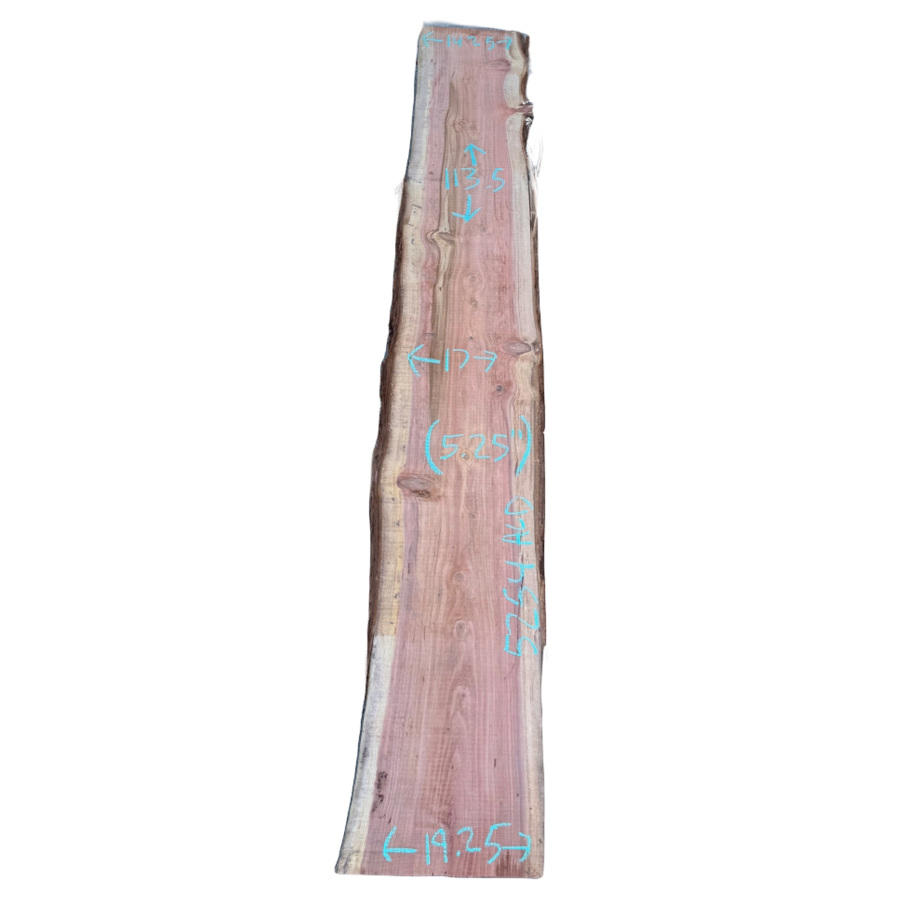 Redwood slab from Peroba Reclaimed measuring 5.25" thick x 14.25"-17"-19.25" wide x 113.5" long
