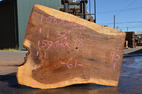 Black Walnut slab from Goby Walnut measuring 3.5" thick x 59"-48"-40" wide x 61" long