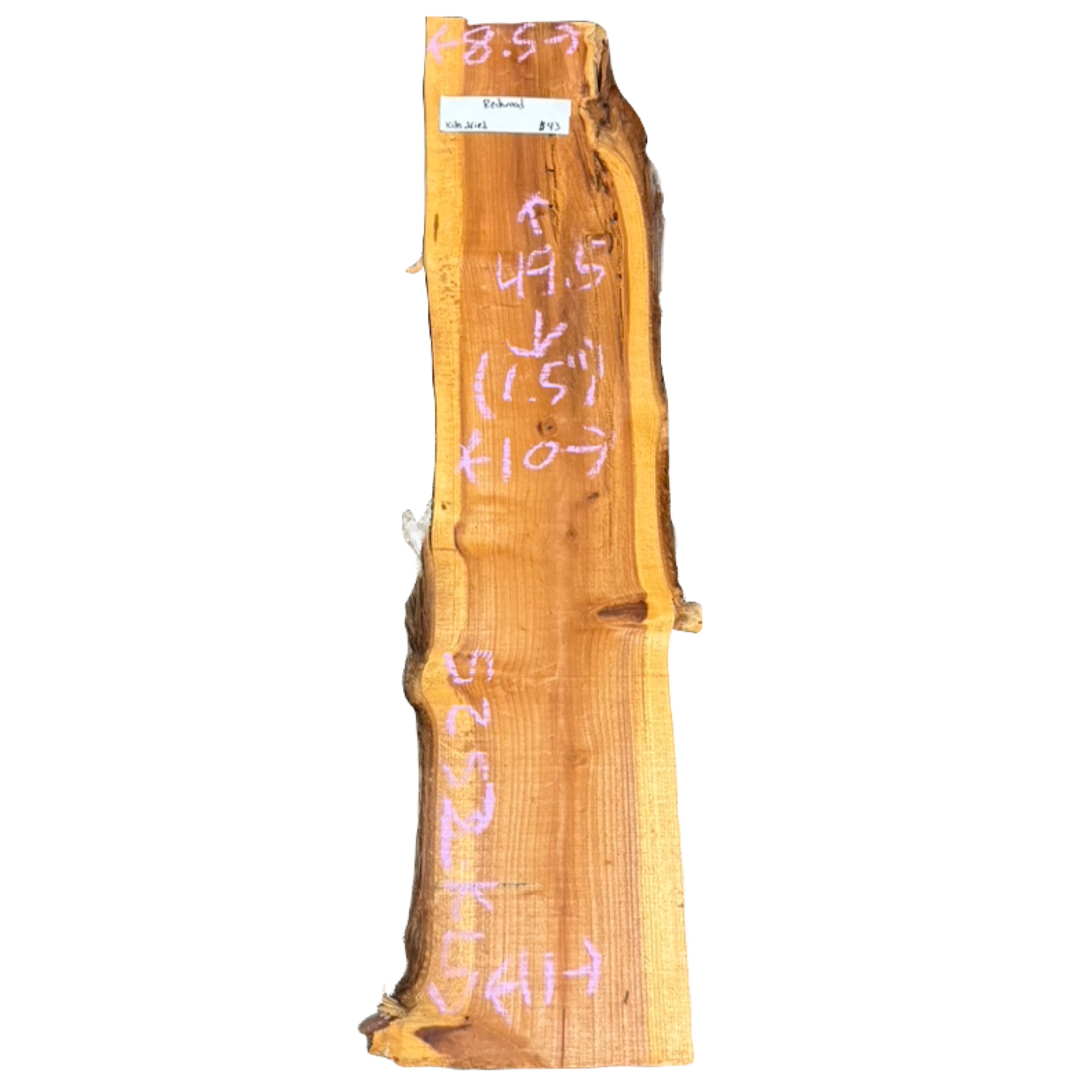 Redwood slab from Peroba Reclaimed measuring 1.5" thick x 8.5"-10"-11" wide x 49.5" long