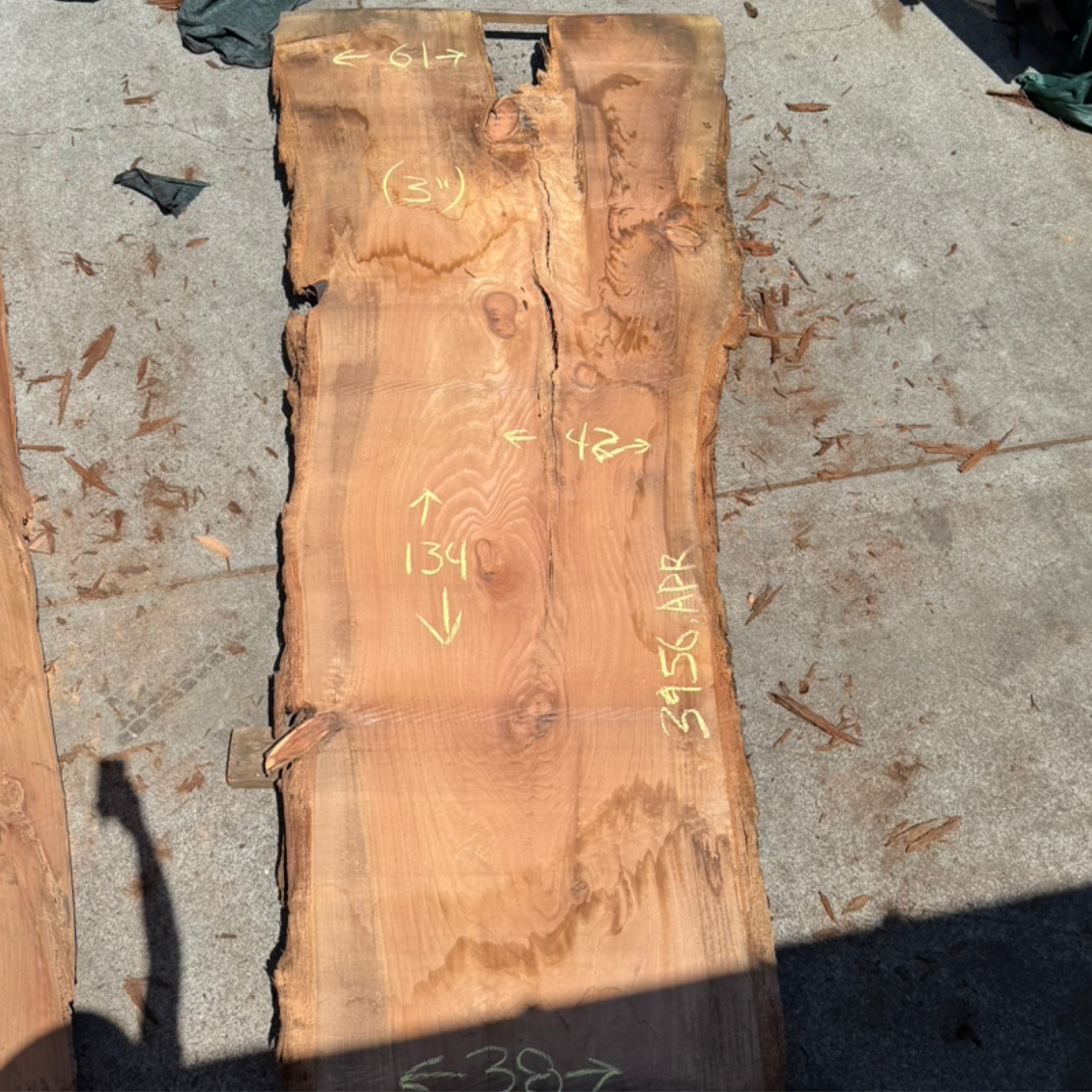 Cedar slab from GL Veneer measuring 3.5" thick x 37"-48" wide x 145"-180" long
