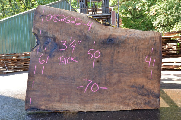 Black Walnut slab from Goby Walnut measuring 3.25" thick x 61"-50"-41" wide x 70" long