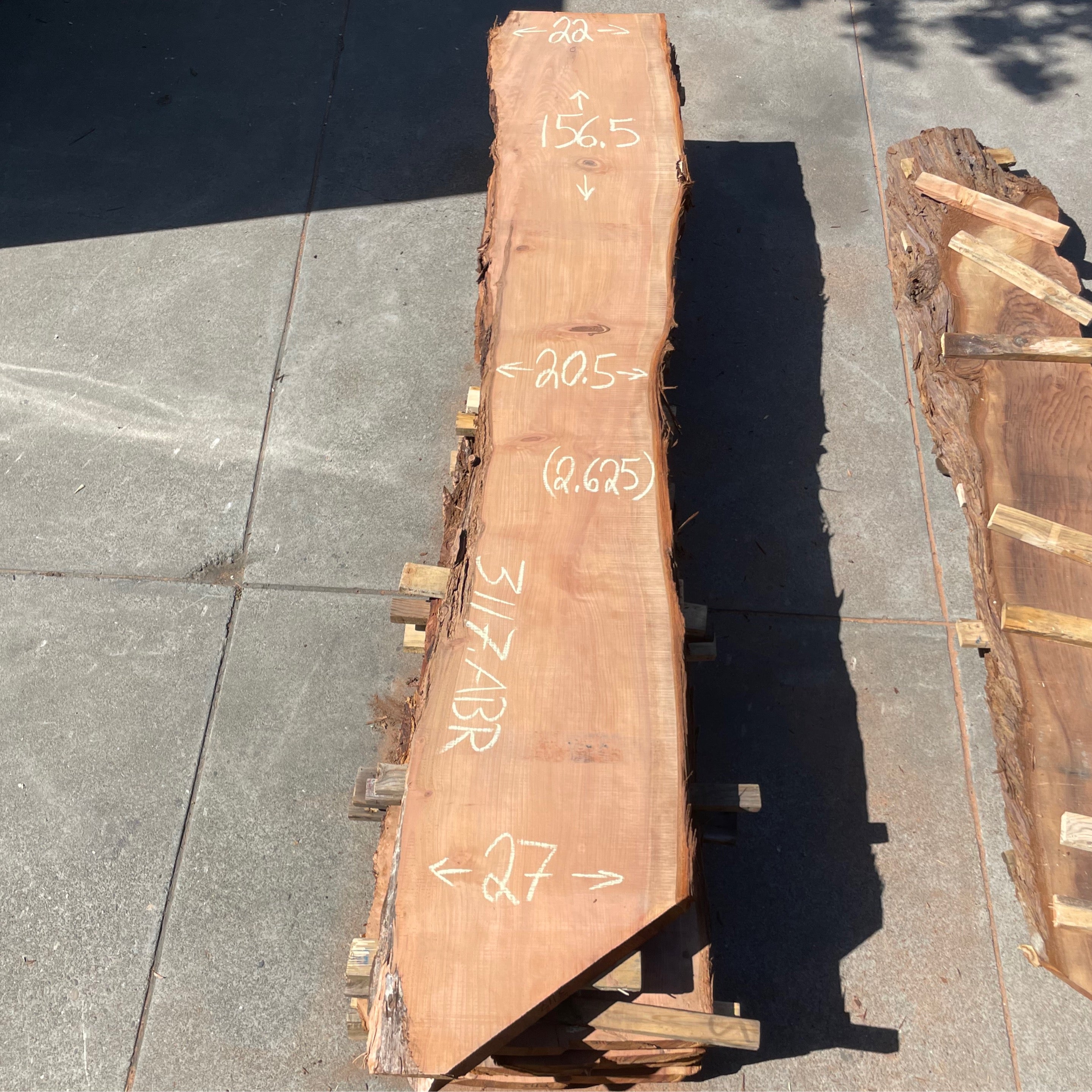 Redwood slab from Peroba Reclaimed measuring 2.625" thick x 22"-20.5"-27" wide x 156.5" long