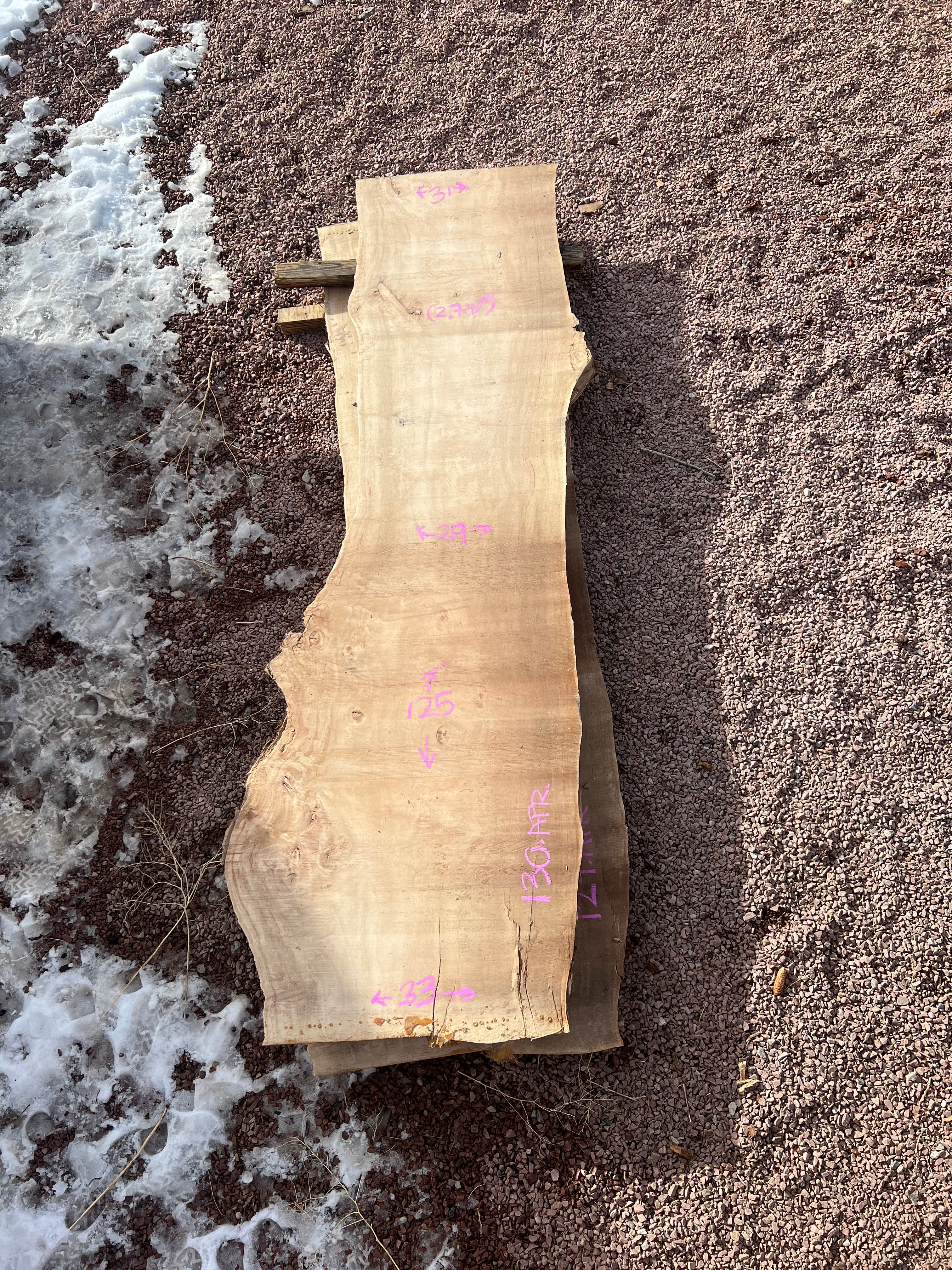 Silver Maple slab from Goby Walnut measuring 3.25" thick x 35"-31"-41"-58" wide x 105" long