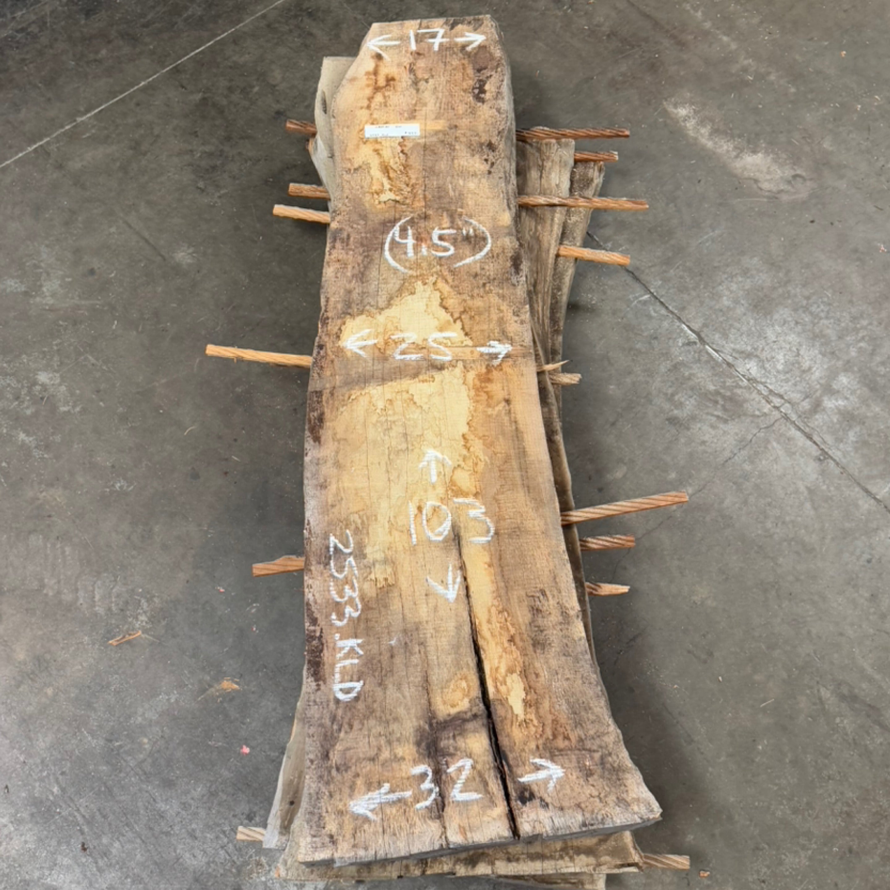 Elm slab from Peroba Reclaimed measuring 4.5" thick x 17"-25"-32" wide x 103" long
