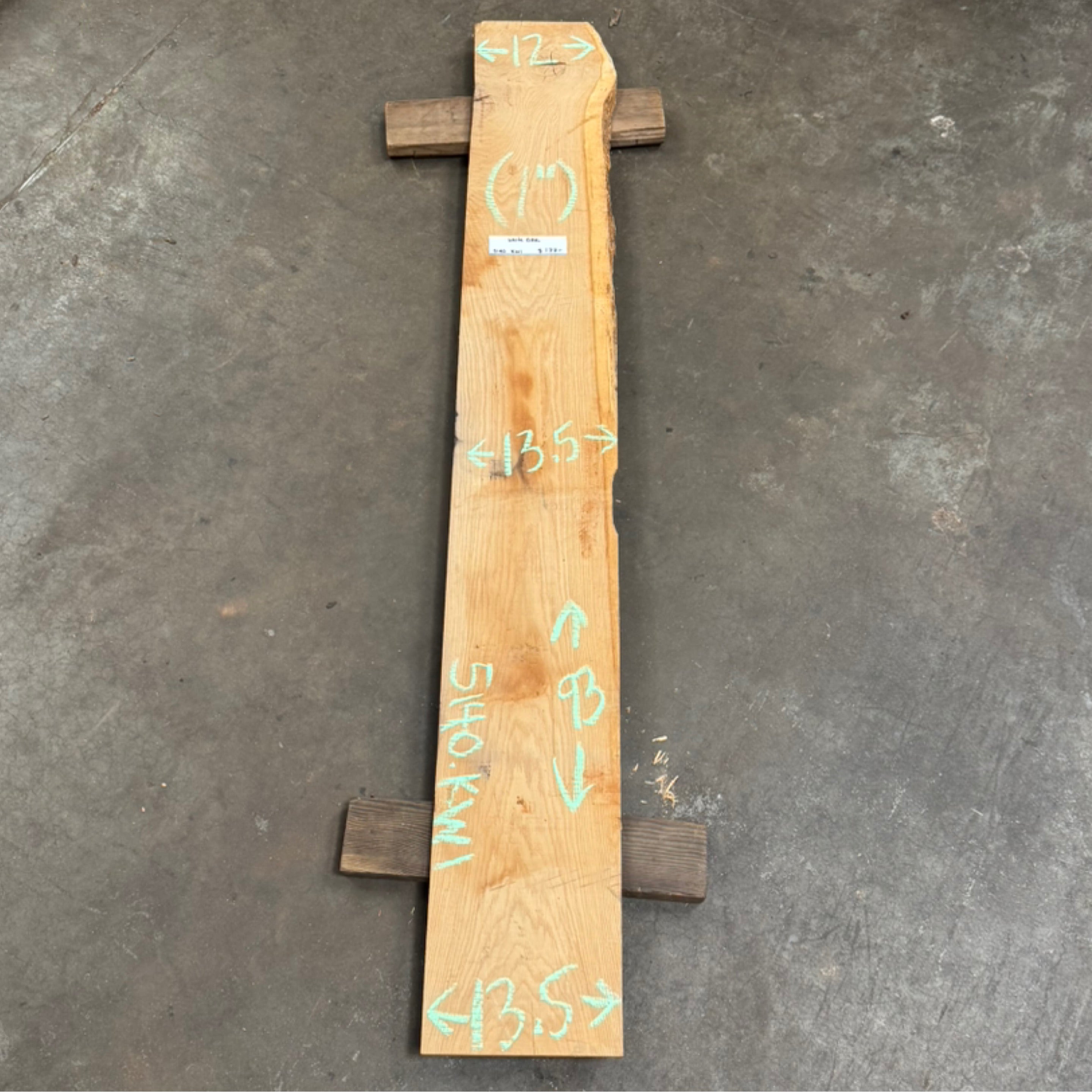 White Oak slab from Peroba Reclaimed measuring 1" thick x 12"-13.5"-13.5" wide x 93" long