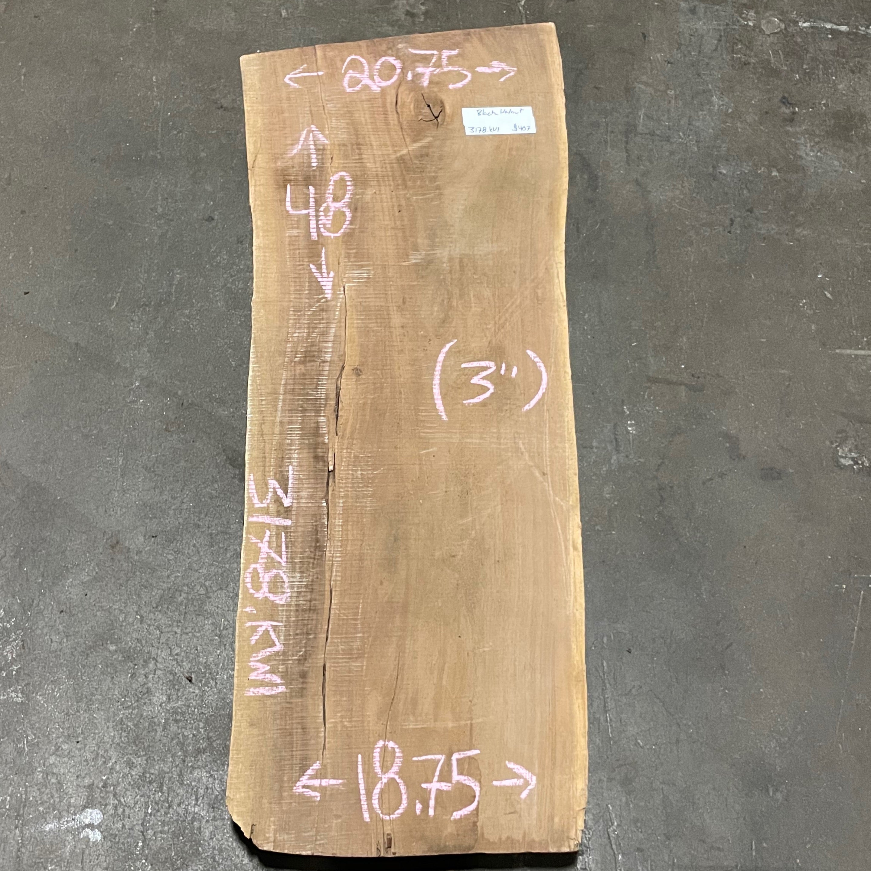 Black Walnut slab from Peroba Reclaimed measuring 3" thick x 20.75"-18.75" wide x 48" long